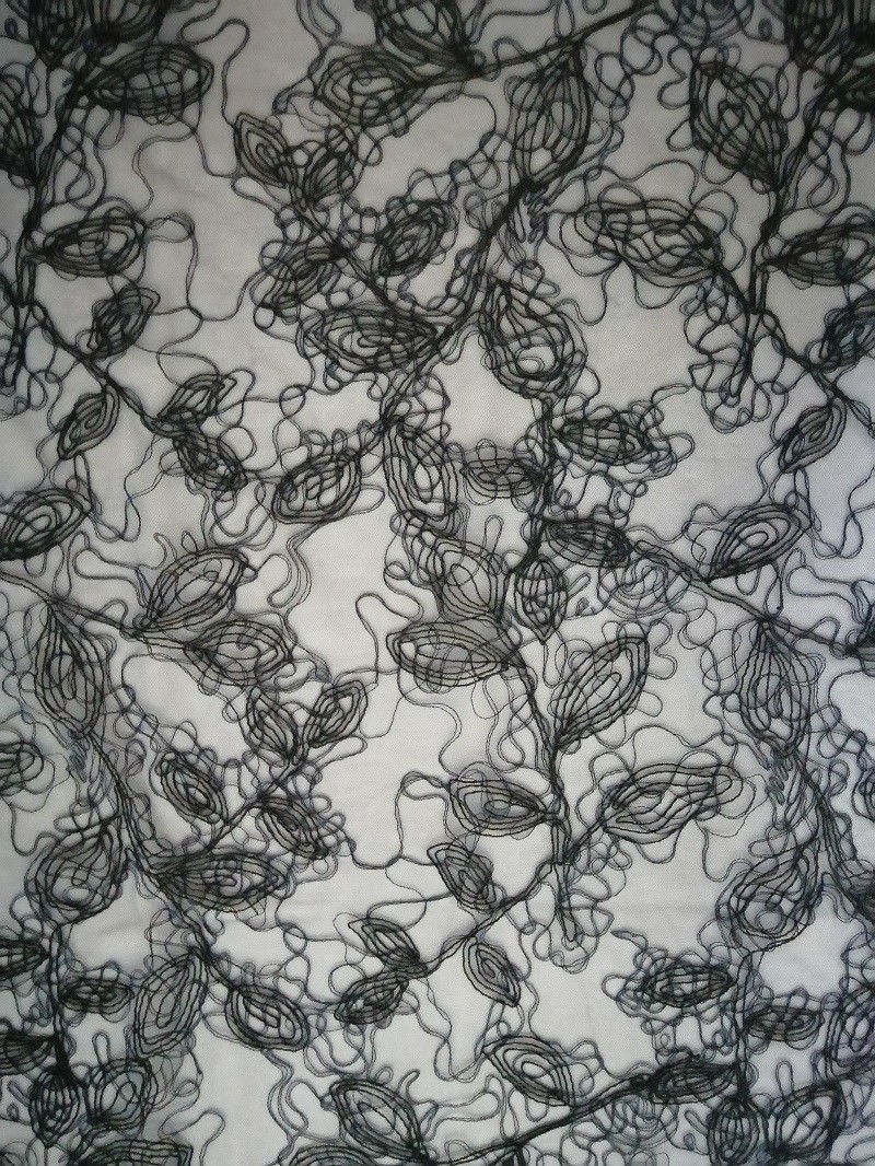 Le tissu attachant de dentelle d'Emrboidered de tissu de partie de crochet de poly dentelle en nylon noire de corde pour le vêtement de robe de Madame de robe l'épousant convient aux robes de robes, de jupe, de petites filles de femmes, aux textiles à la maison, au rideau, aux articles de literie, aux habillements, aux chapeaux, aux robes de mariage, aux chemisiers, etc.