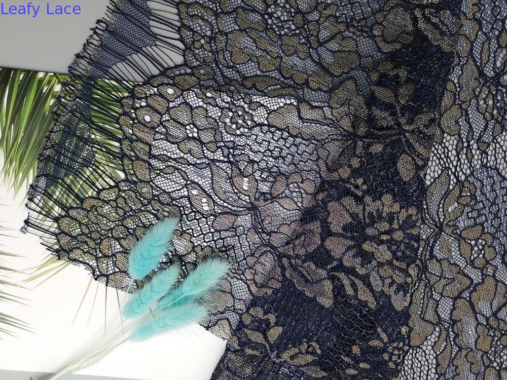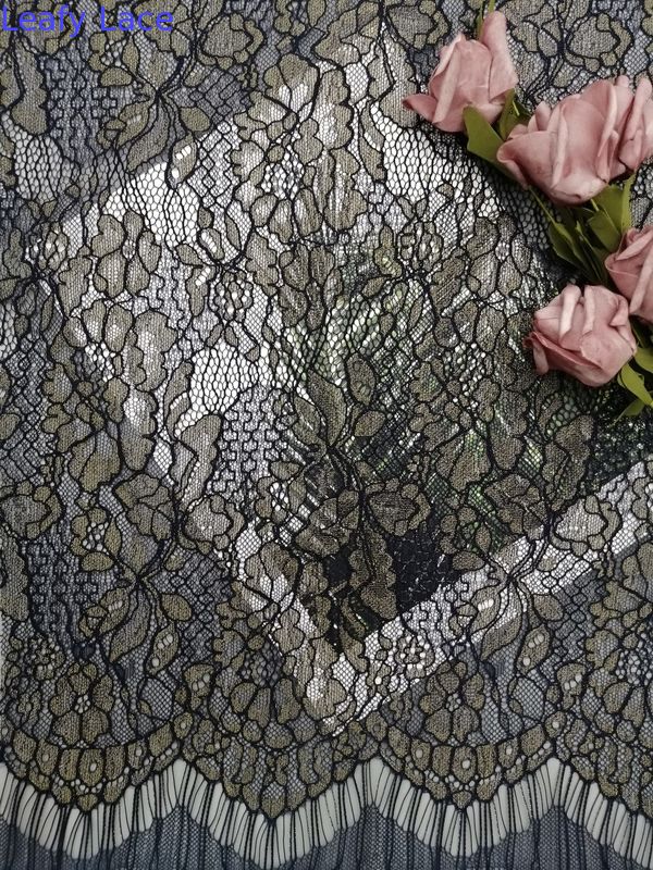 Le cil français sensible Lurex métallique de Chantilly lacent le tissu avec le feston avec des caractéristiques de vêtement de robe de Wowen :