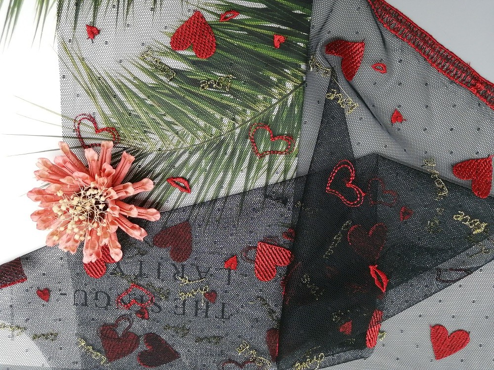 - Garment Brands qui respecte l'environnement de Tulle de maille de broderie de tissu de Madame colorée matérielle rouge répondez à l'exigence de la norme 100 d'OEKO-Tex.