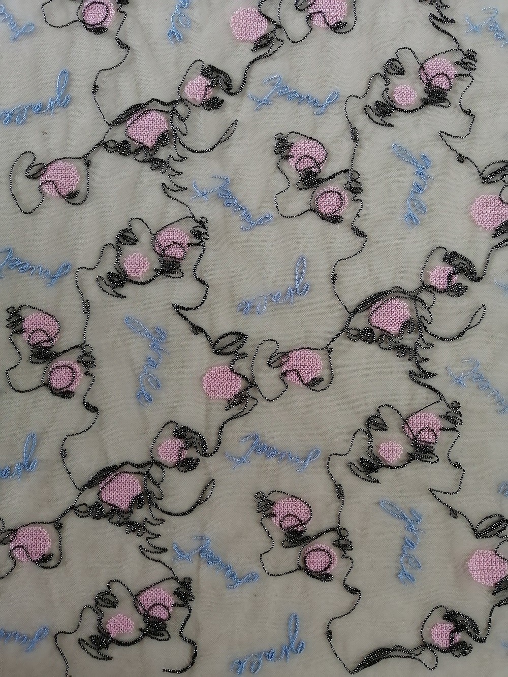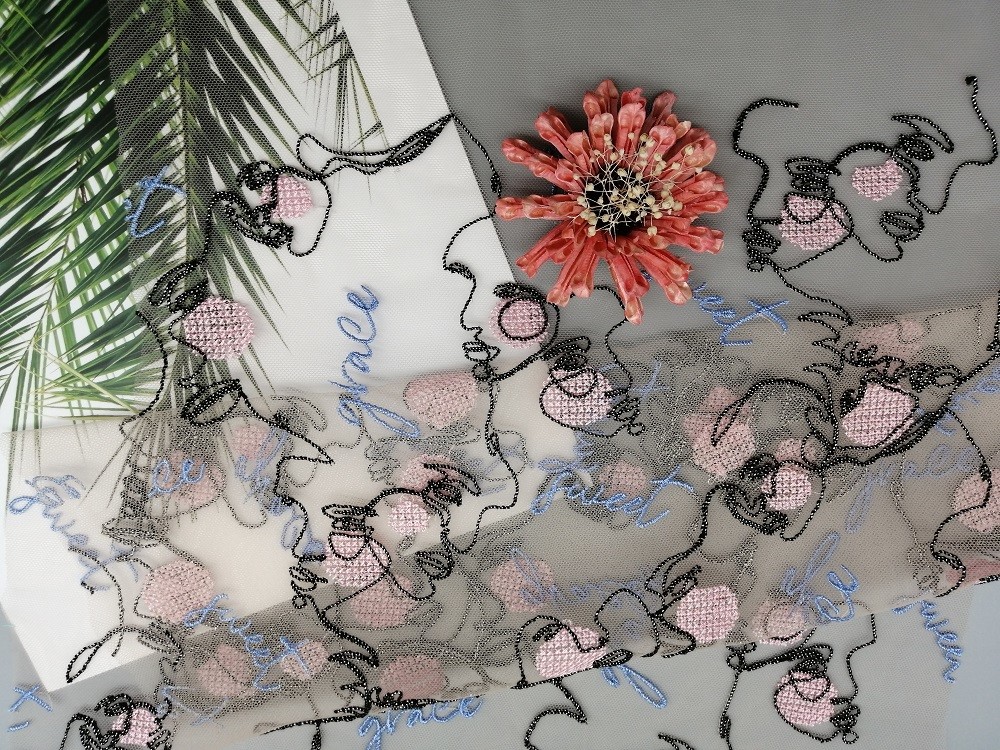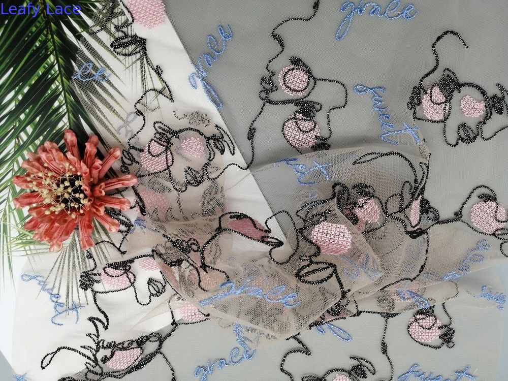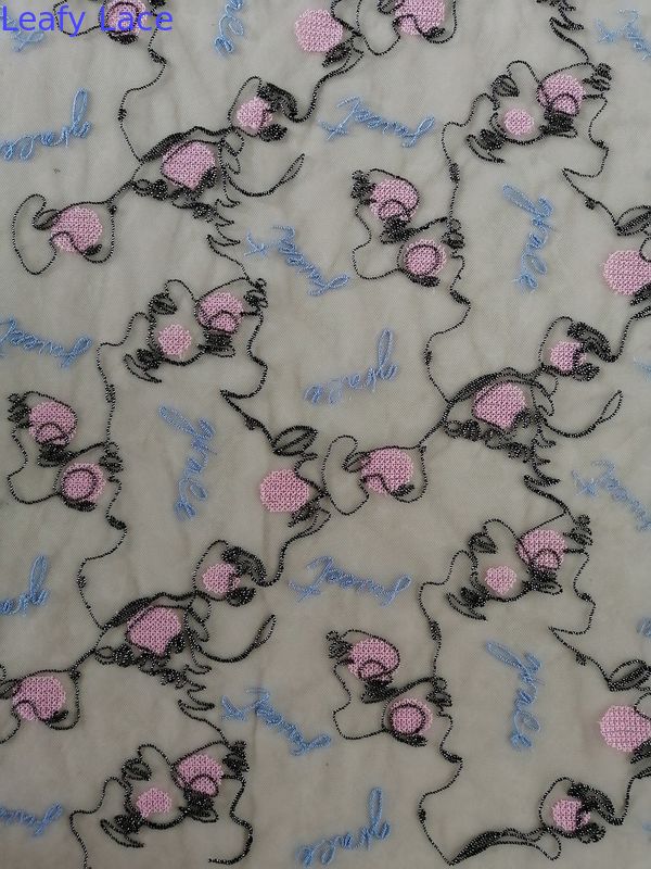 - Tissu coloré multi de Tulle Mesh Embroidered Lace avec des lettres avec des caractéristiques de marques de vêtement :