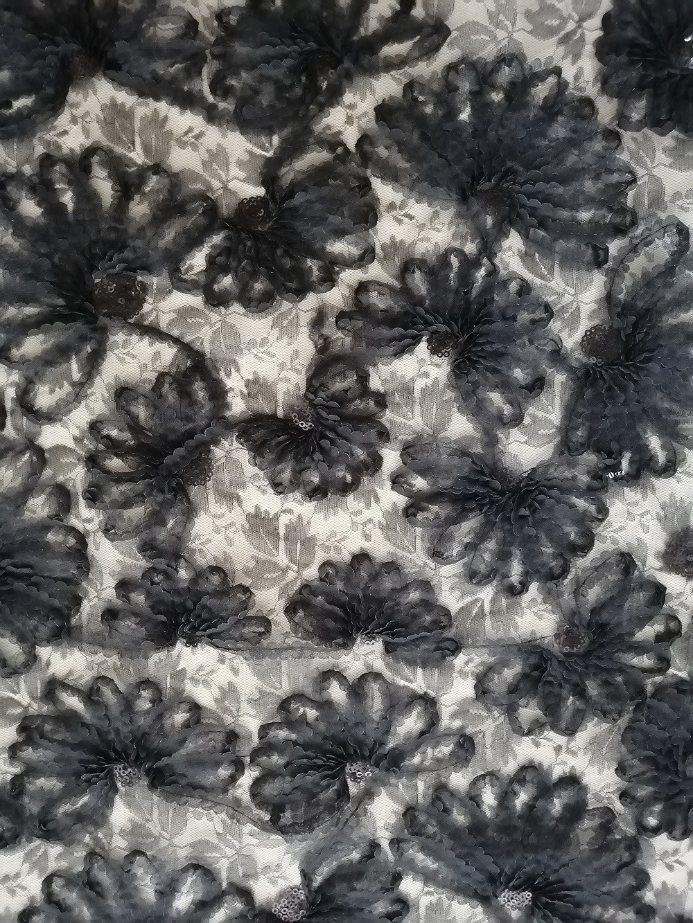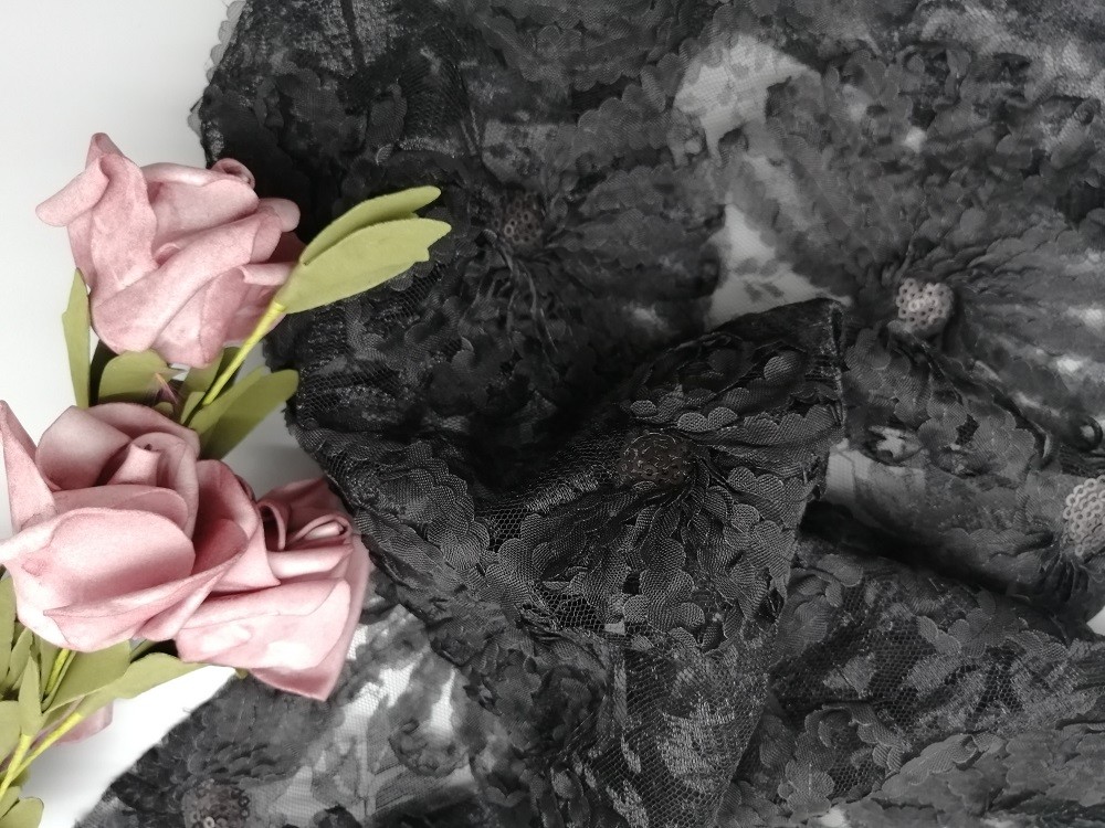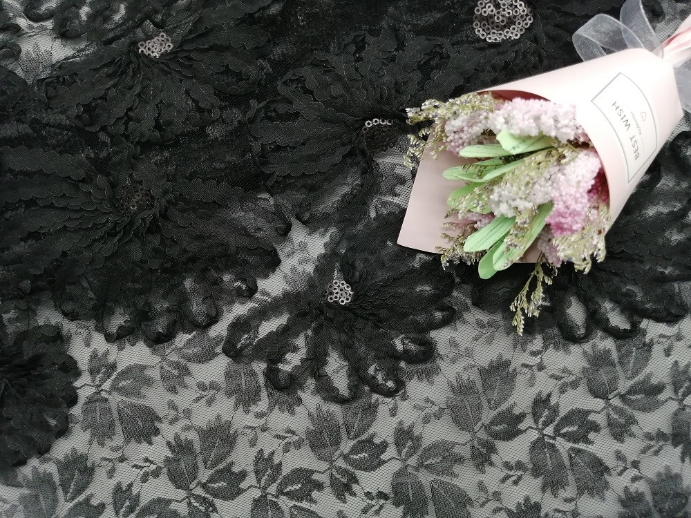 - La paillette noire lacent la dentelle de partie de broderie creusée par tissu de broderie d'Applique 3D pour de longues robes de petites filles de vêtement de robe de jupe de femmes, textiles à la maison, rideau, articles de literie, habillements, chapeaux, robes de mariage, chemisiers, etc.