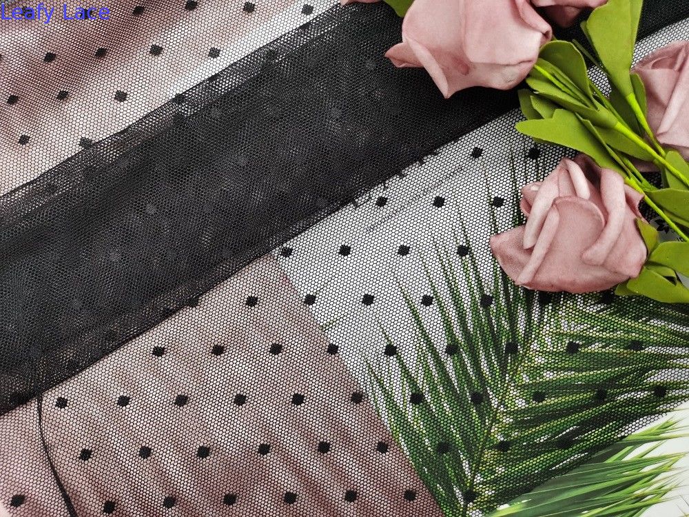 La polka noire Dot Elastic Mesh Soft Stretch lacent le tissu pour fille de Dress Garment Brands de robe même de Madame la petite que la robe est pour les textiles à la maison, rideau, articles de literie, habillements, chapeaux, robes de mariage, chemisiers, Garments de Madame, nappe, robes de petites filles, façonnent les chaussures, le pantalon, les pantalons, les shorts, les vestes, etc. femelles.