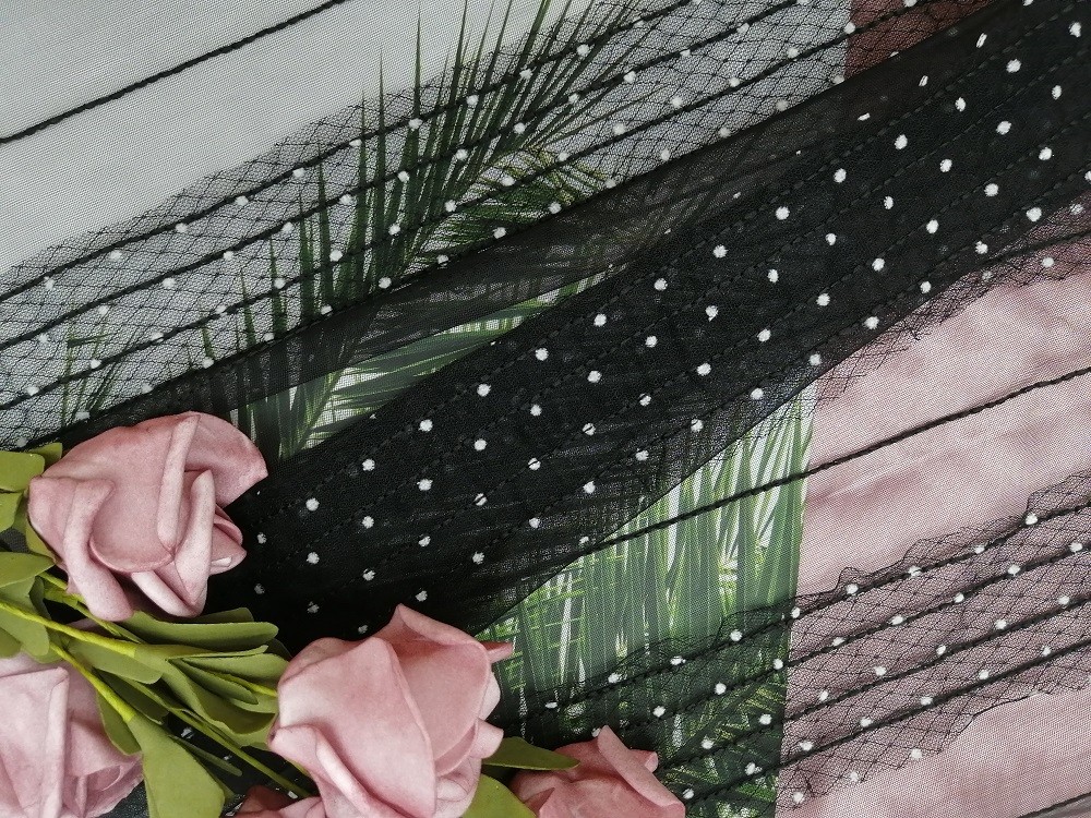 Le tissu noir de tissu de Mesh Embroidery Dot Flocked Mesh pour la robe de petite fille de Dress Garment Brands de robe même de Madame est pour les textiles à la maison, rideau, articles de literie, habillements, chapeaux, robes de mariage, chemisiers, Garments de Madame, nappe, robes de petites filles, façonnent les chaussures, le pantalon, les pantalons, les shorts, les vestes, etc. femelles.
