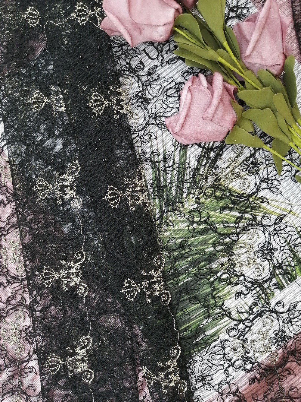 Mettre en évidence: | 100yards a perlé le tissu brodé de dentelle,125CM a perlé le tissu brodé de dentelle,Tissu brodé noir de dentelle de 125CM |
