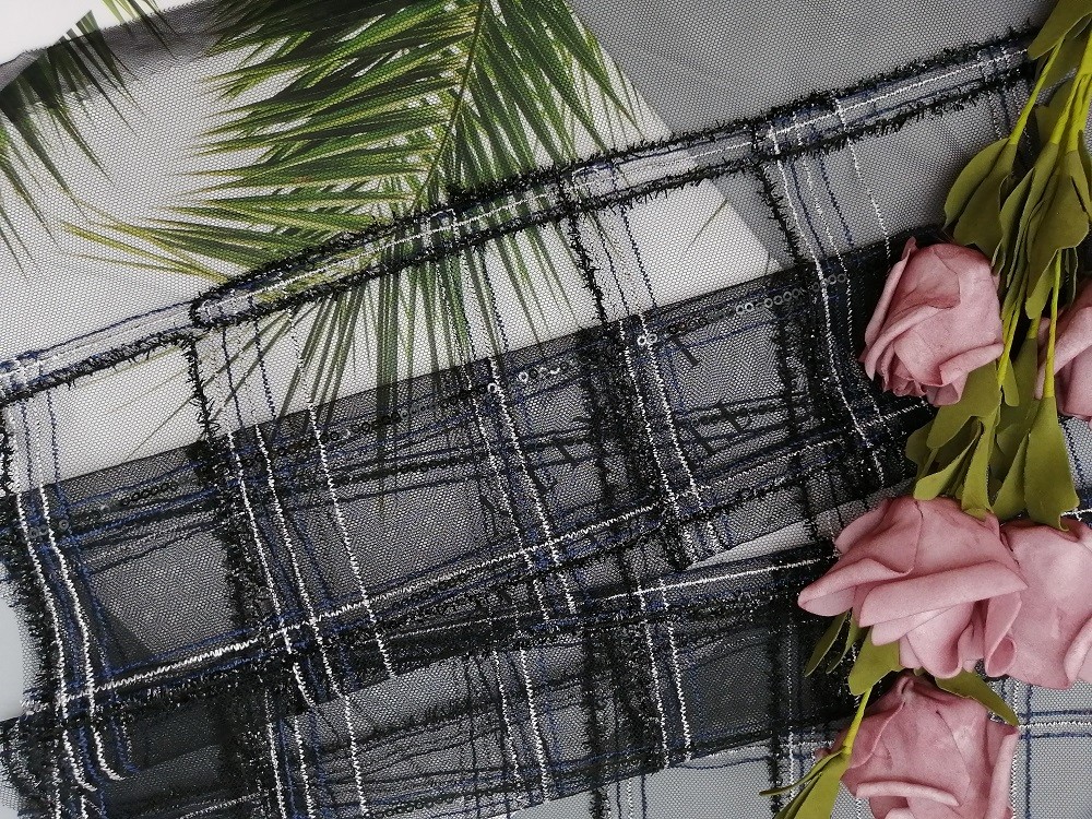 Polyester 100% NavyTulle Mesh Sequin Embroidered Fabric avec des caractéristiques de robe de petite fille de Dress Garment Brands de robe de soirée de Madame :