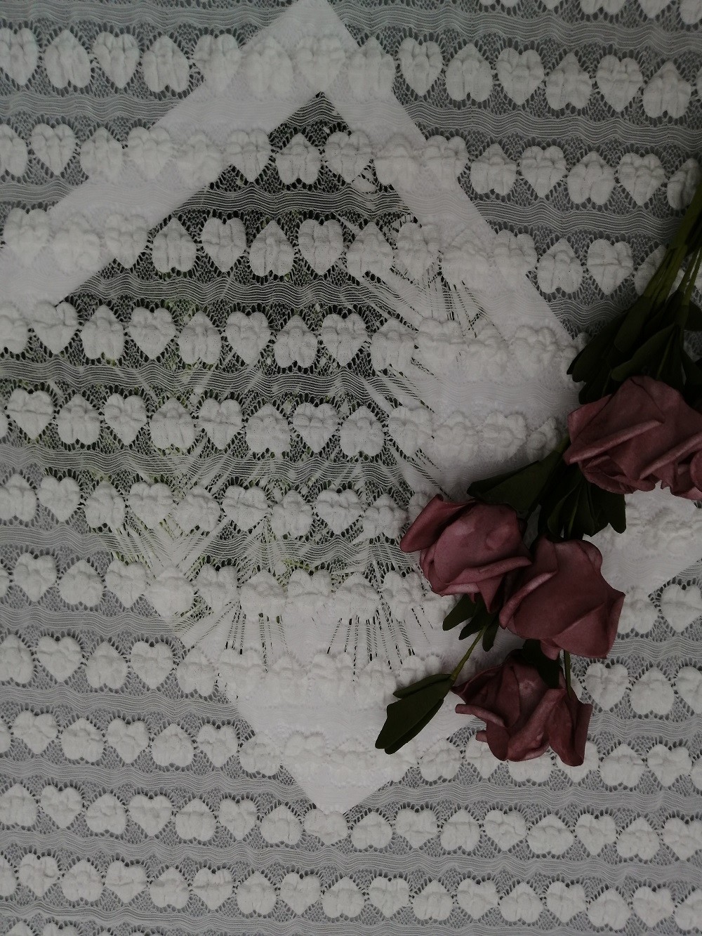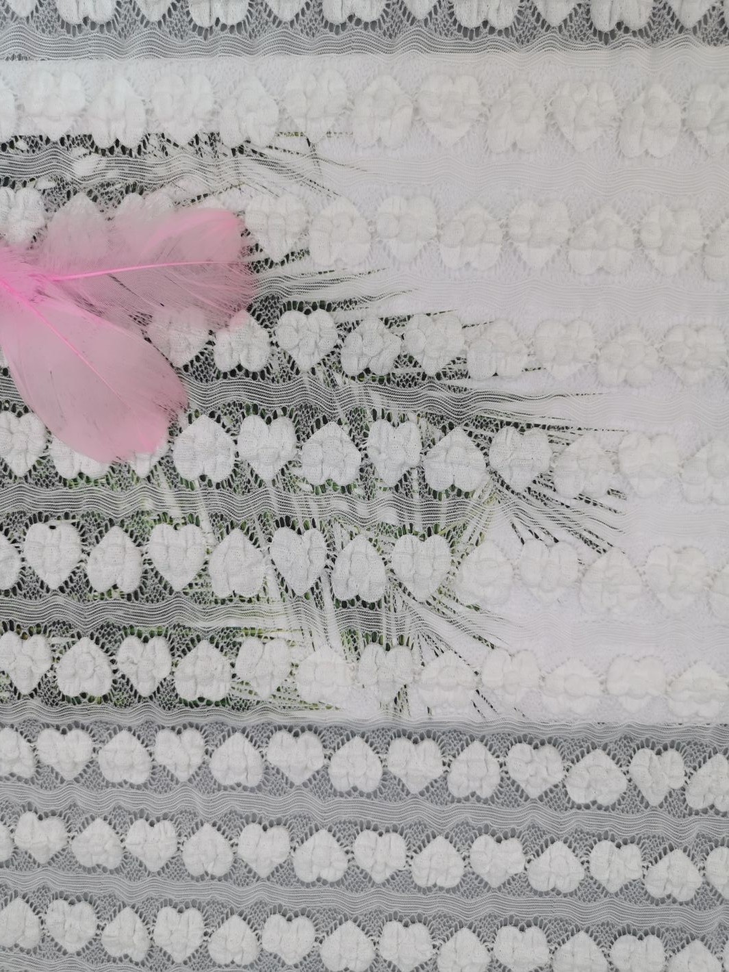 | Nom de produit: | Tissu de dentelle de bout droit | Caractéristique: | Dentelle blanche de forme de coeur |