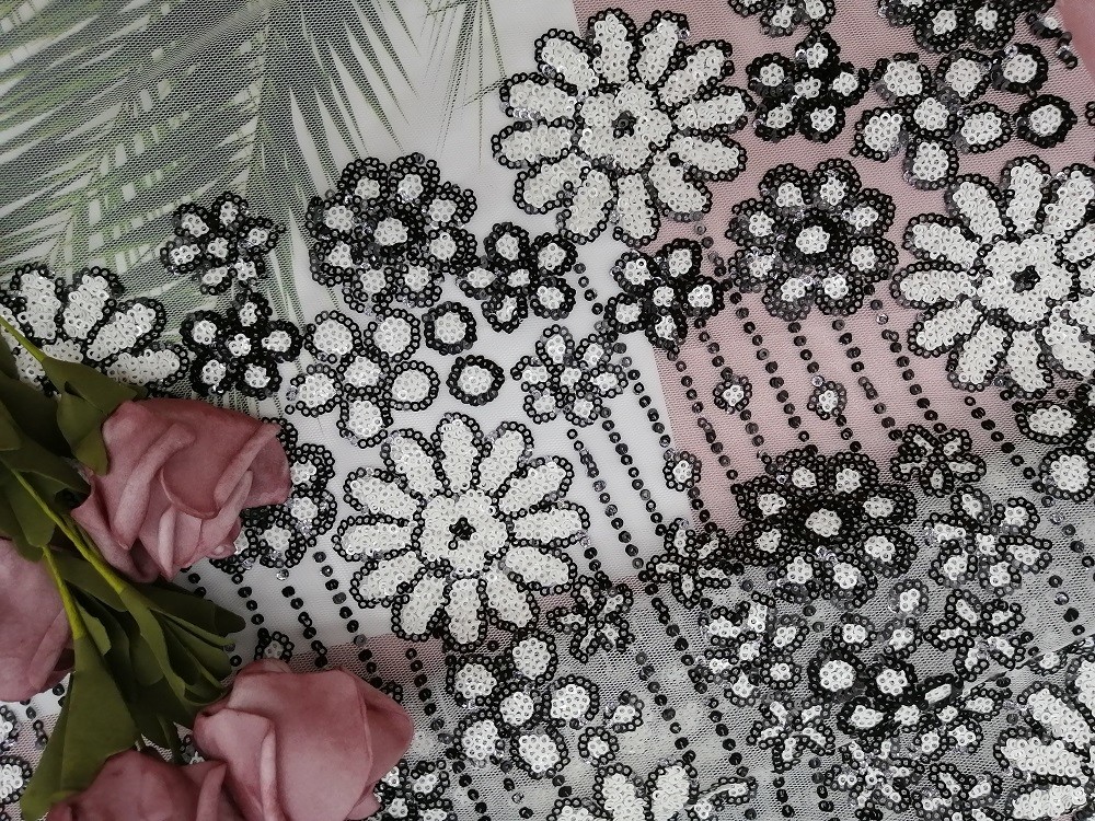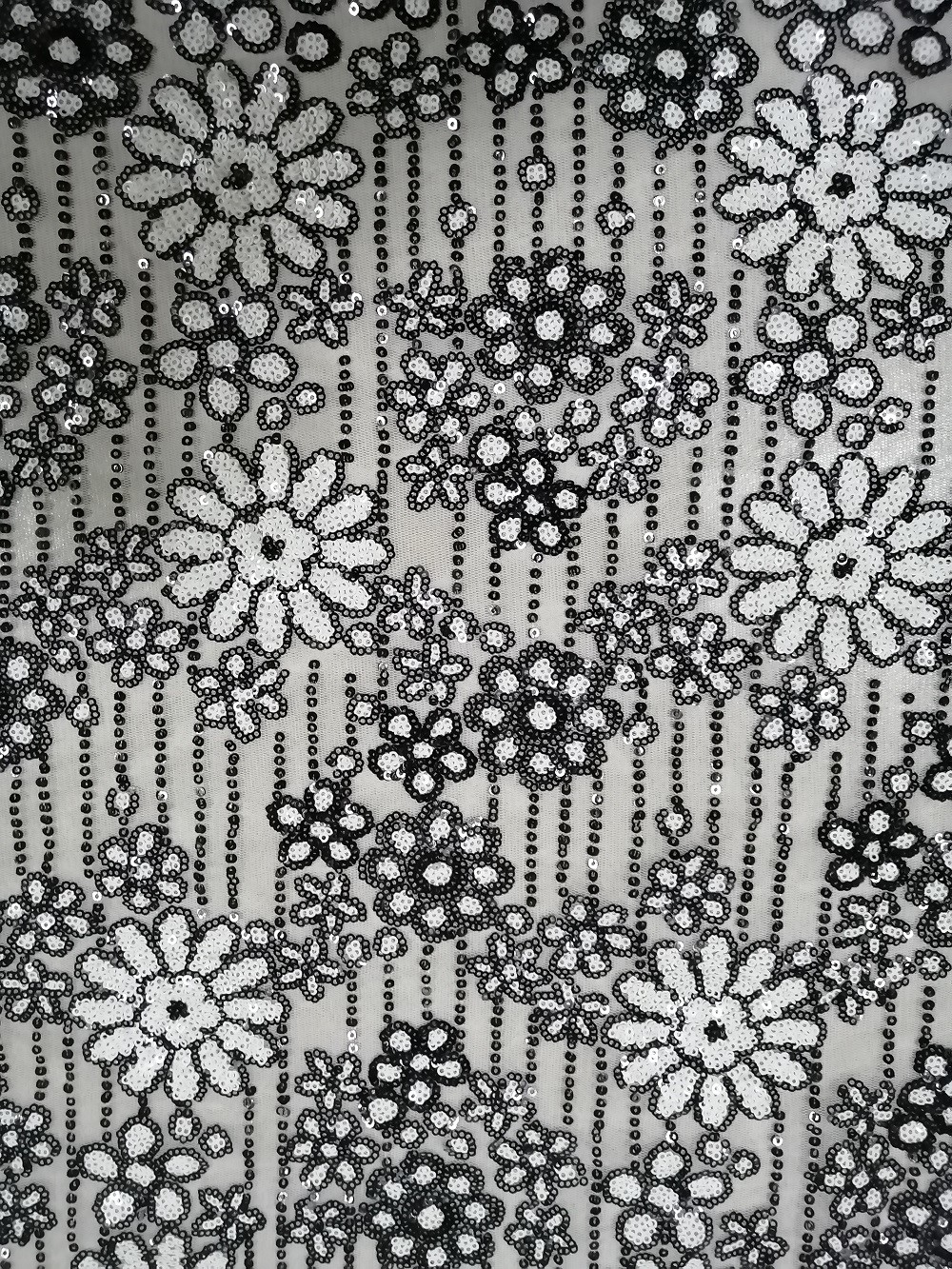 | Mettre en évidence: | Tissu brodé de paillette noire blanche de contraste,Tissu brodé de paillette de robe de soirée,tissu noir et blanc de paillette de 125cm |