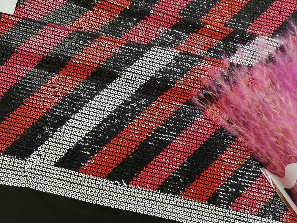La broderie imprimée linéaire colorée de paillette imprimée lacent le tissu de partie de tissu