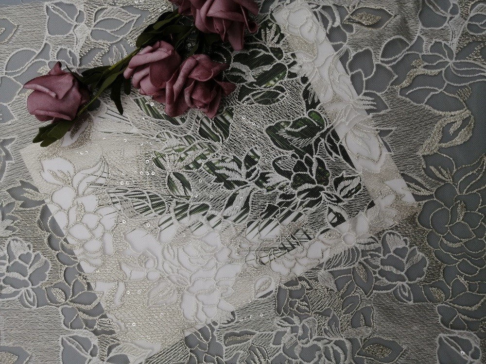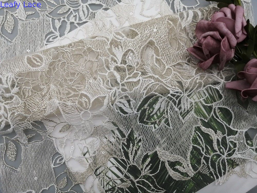 Mettre en évidence: | tissu métallique de dentelle de 125cm Lurex,60 yards de paillette de tissu blanc de dentelle,Tissu blanc métallique de dentelle de paillette de Lurex |
