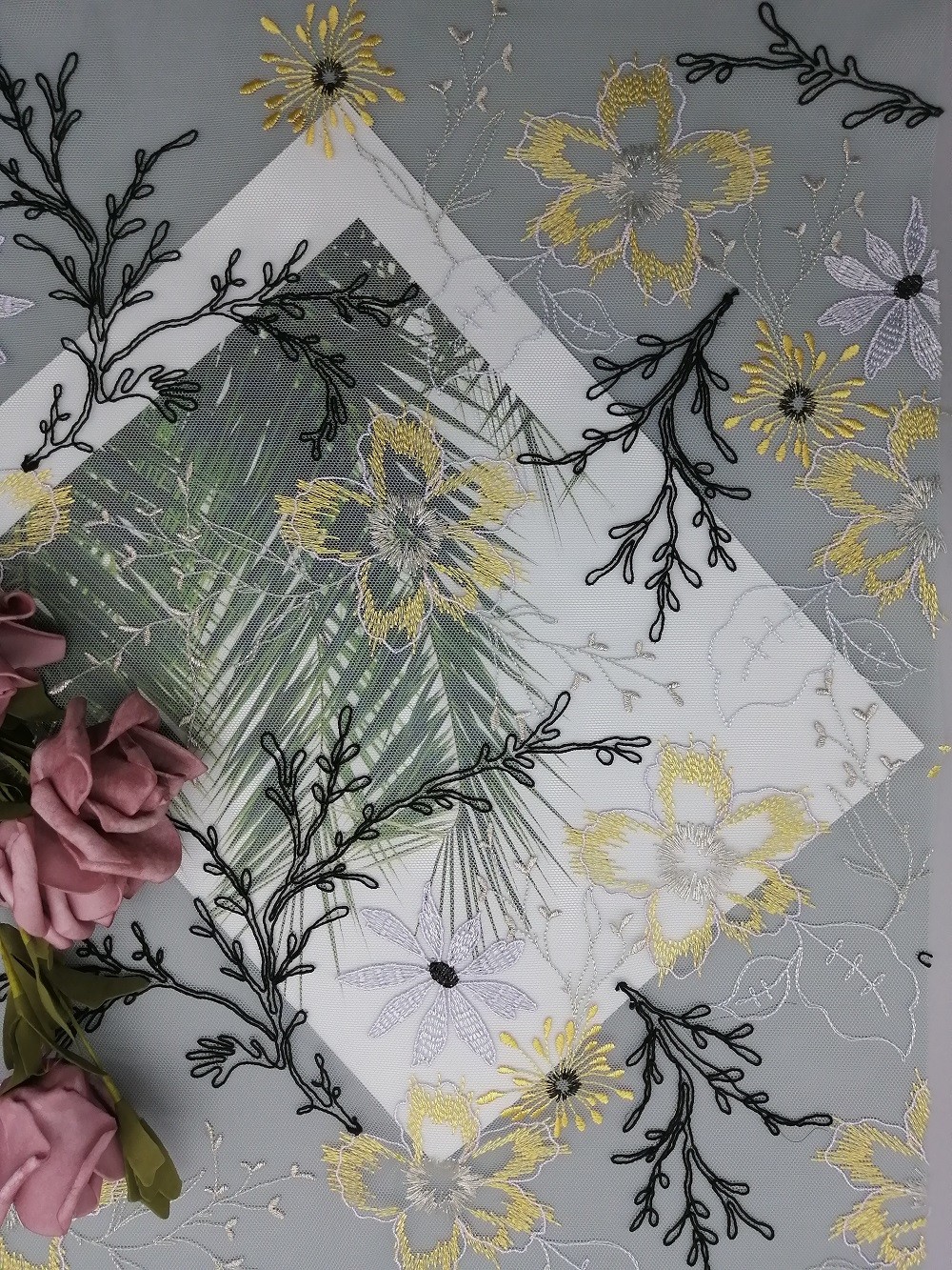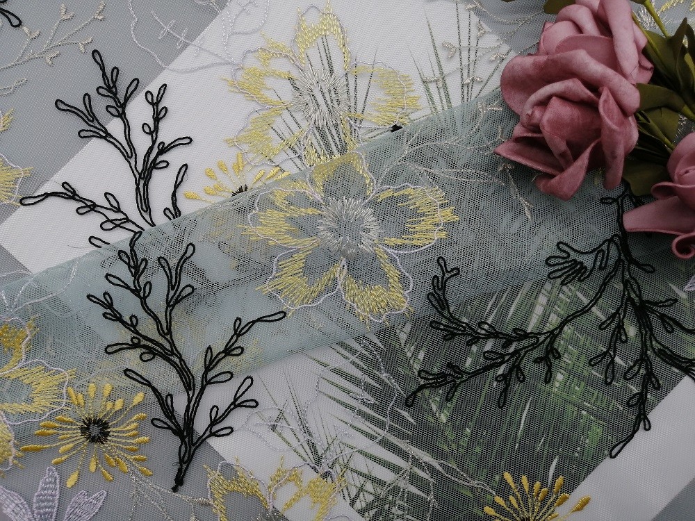 Mettre en évidence: | Tulle Mesh Corded Lace Fabric,125cm Mesh Corded Lace Fabric,tissu floral de dentelle de 125cm Tulle |