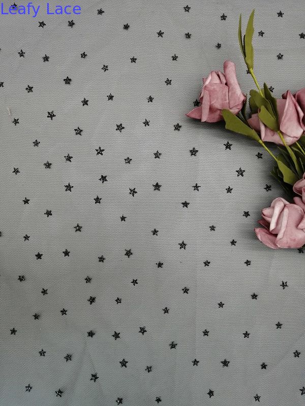 - Le revêtement métallique Tulle d'impression d'aluminium de Tulle Mesh Fabric Women Dress de dentelle de forme d'étoile peut répondre à l'exigence de la norme 100 d'OEKO-Tex.