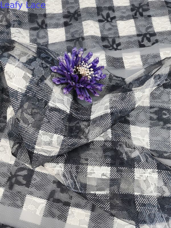 La dentelle de modèle de plaid a imprimé le tissu de dentelle a vérifié des caractéristiques rayées de dentelle de broderie :