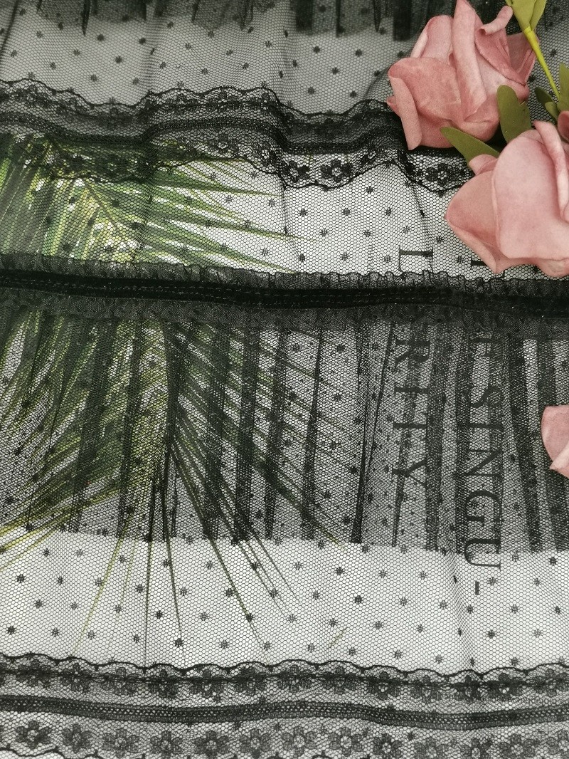 - Dot Foil noir imprimant Tulle pour engrener le pli plissé Mesh Crushed Lace de tissu de dentelle peut répondre à l'exigence de la norme 100 d'OEKO-Tex.