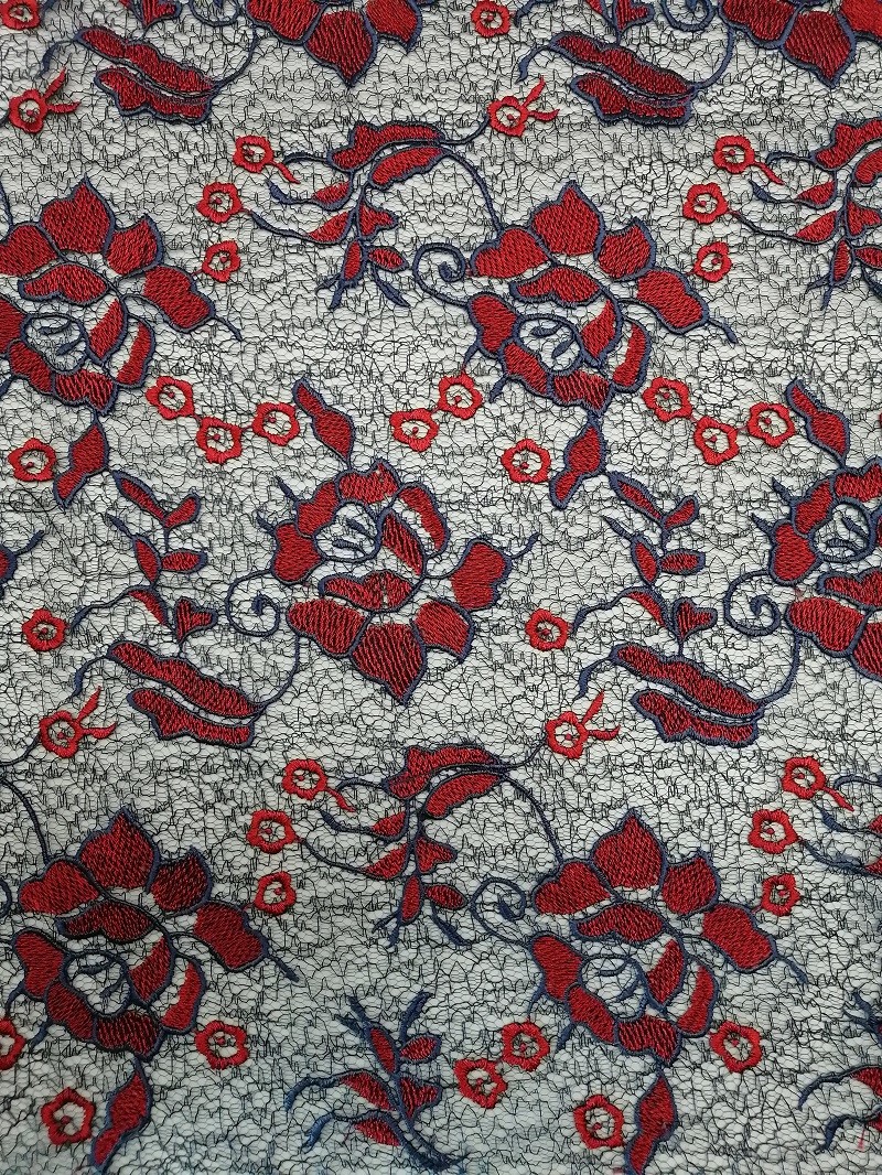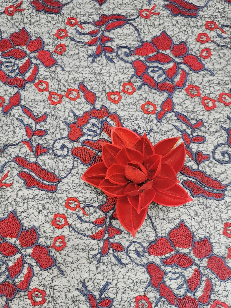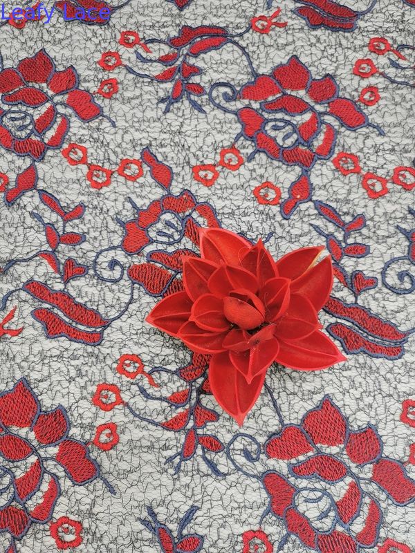 Grande robe femelle colorée florale rouge de dentelle de tissu de dentelle de crochet de broderie pour de longues robes de petites filles de vêtement de robe de jupe de femmes, textiles à la maison, rideau, articles de literie, habillements, chapeaux, robes de mariage, chemisiers, etc.