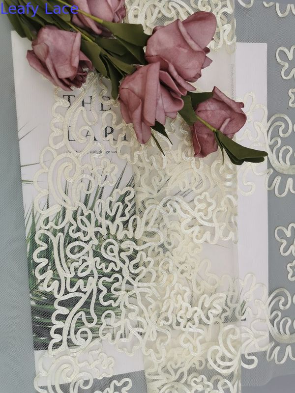 Mettre en évidence: | Poly tissu brodé de dentelle de crochet,Poly tissu de dentelle de crochet de 125CM,Tissu en ivoire de dentelle de broderie de 125CM |