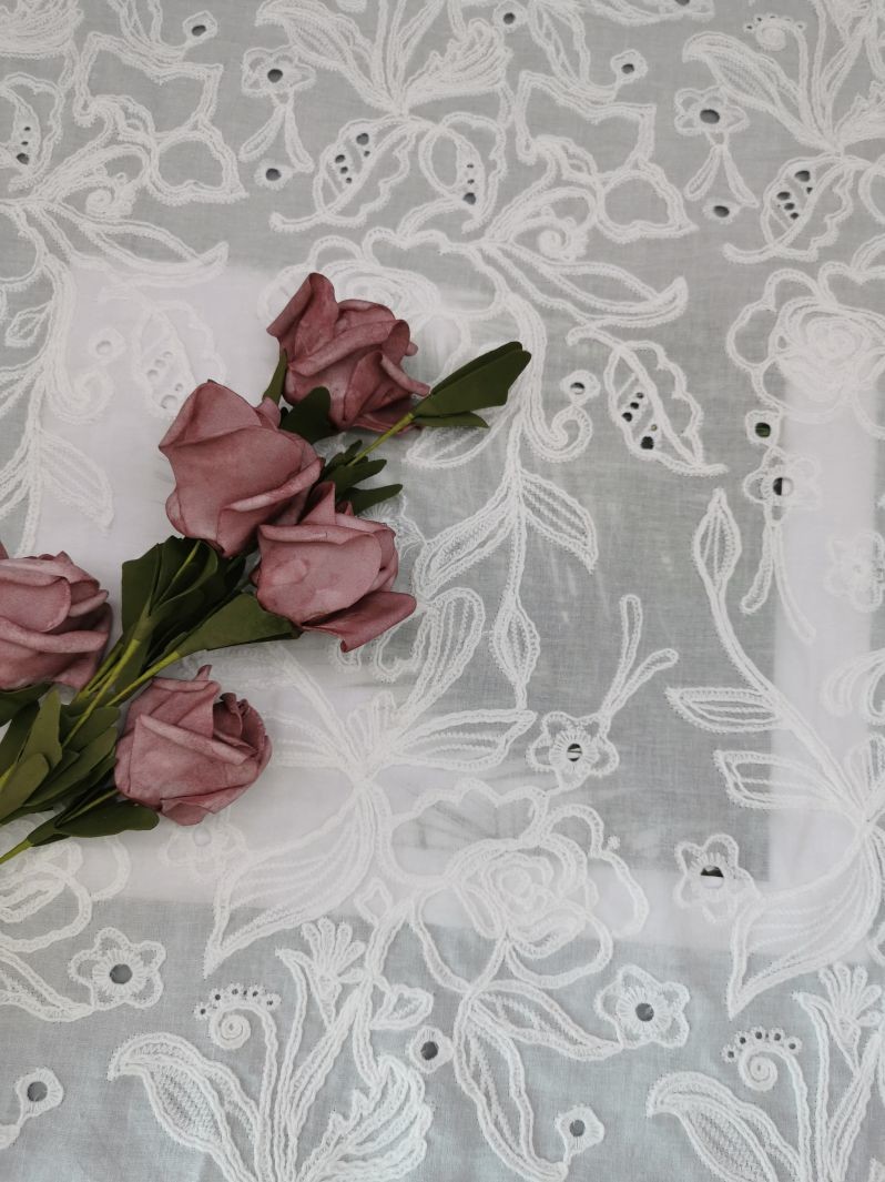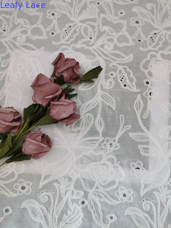 largeur: | 125CM | Nom de production: | Tissu brodé d'oeillet |