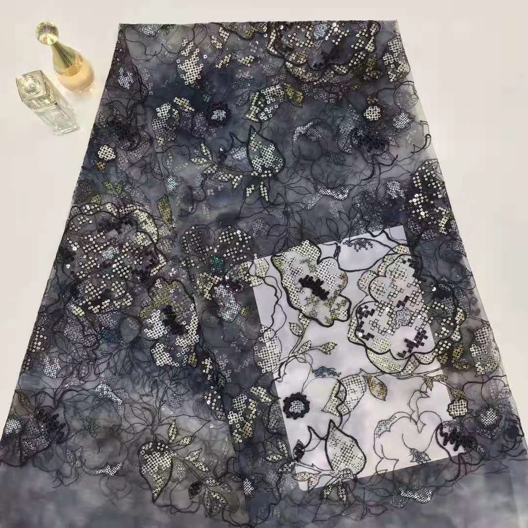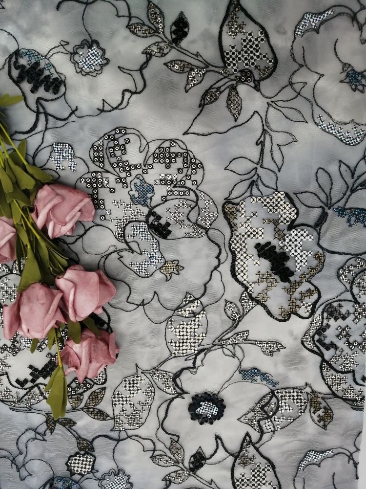 Mettre en évidence: | Tissu brodé de paillette de 125CM,Mesh Sequin Embroidered Fabric,OEKO TEX a coloré la dentelle florale |