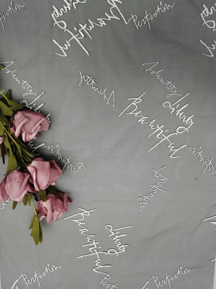 La dentelle de voile de modèle de lettre a brodé la maille de broderie de tissu de maille de Tulle pour de longues robes de petites filles de vêtement de robe de jupe de femmes, textiles à la maison, rideau, articles de literie, habillements, chapeaux, robes de mariage, chemisiers, chemise même d'hommes, etc.