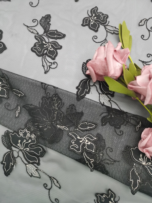 - Matériel : -Le tissu de broderie d'Applique est fait de terre : VISAGE 100%polyester : 100%polyester. La conception florale traditionnelle de la Chine est transformée en tissu de fond de maille de Tulle.