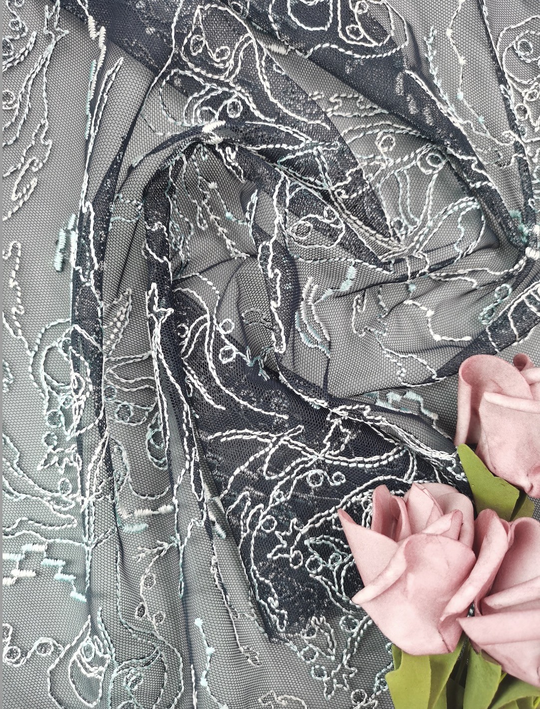 Nom de production: | Dot Tulle Embroidered Lace Fabric | La terre: | VISAGE 100%P : 100%P |
