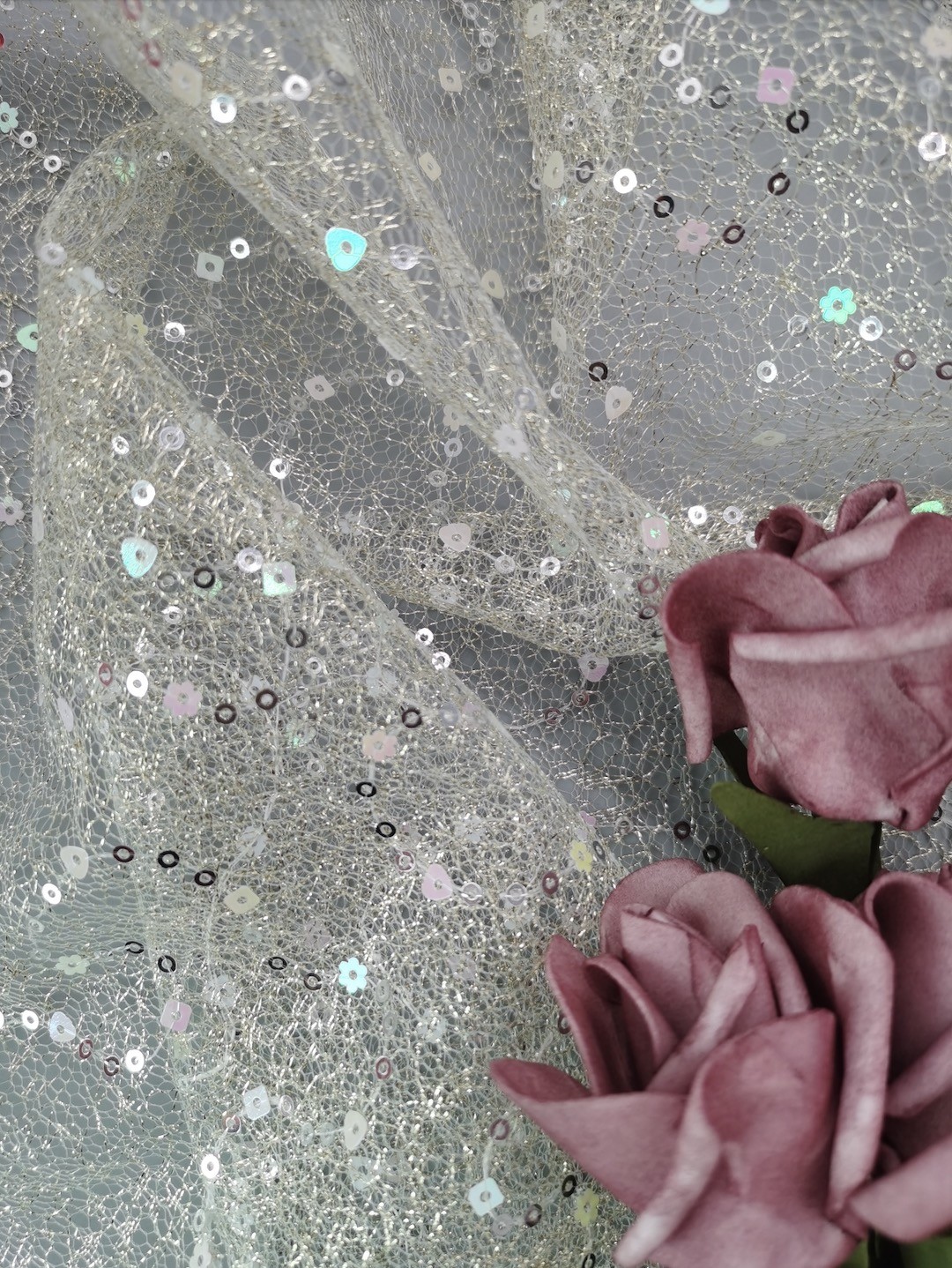 Le tissu brodé de paillette est pour des robes de robes, de jupe, de petites filles de femmes, des textiles à la maison, le rideau, des articles de literie, des habillements, des chapeaux, des robes de mariage, des chemisiers, etc.