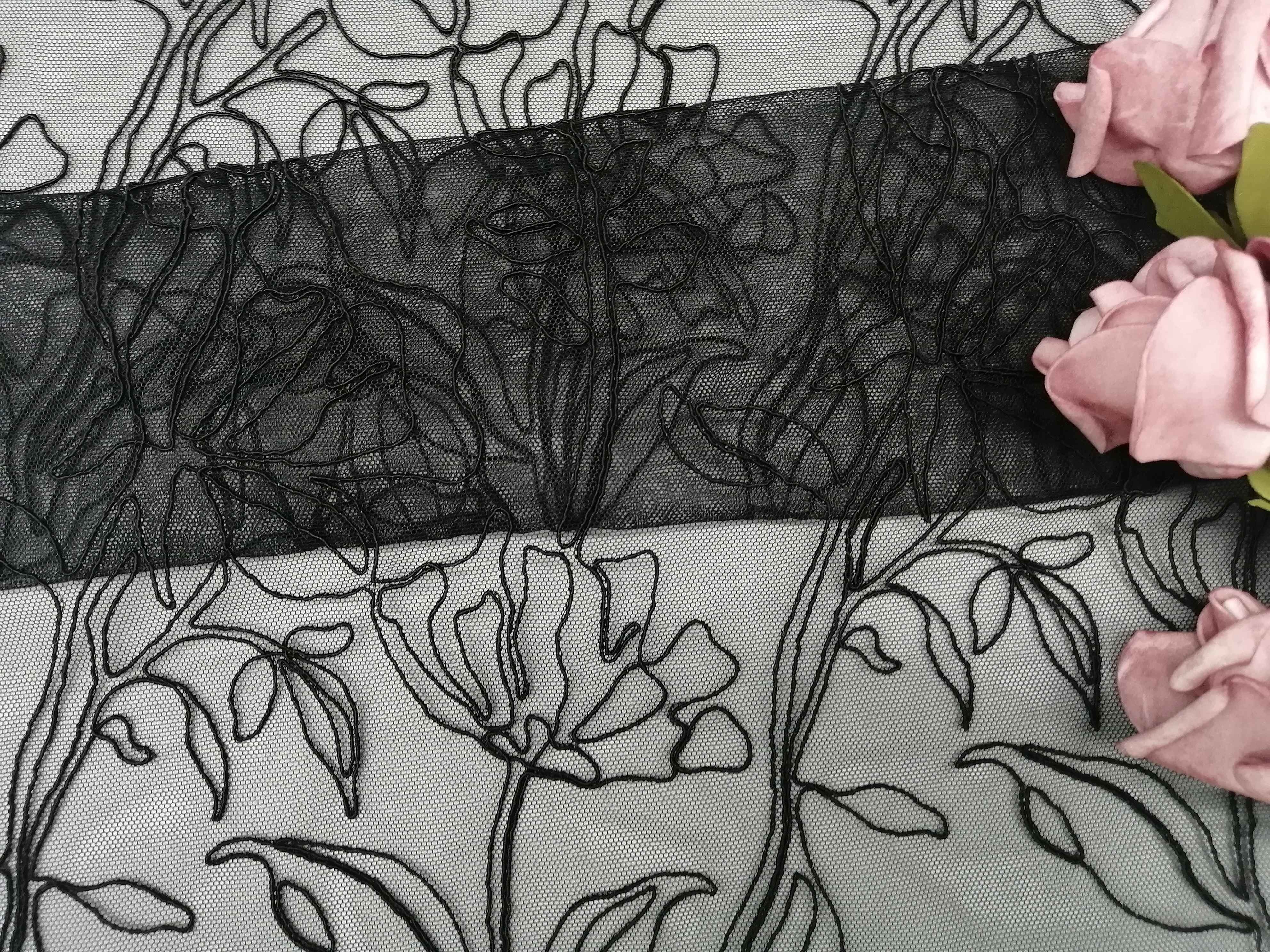 Mettre en évidence: | Tissu de dentelle brodé par modèle floral,Brodé lacez la largeur du tissu 129cm |