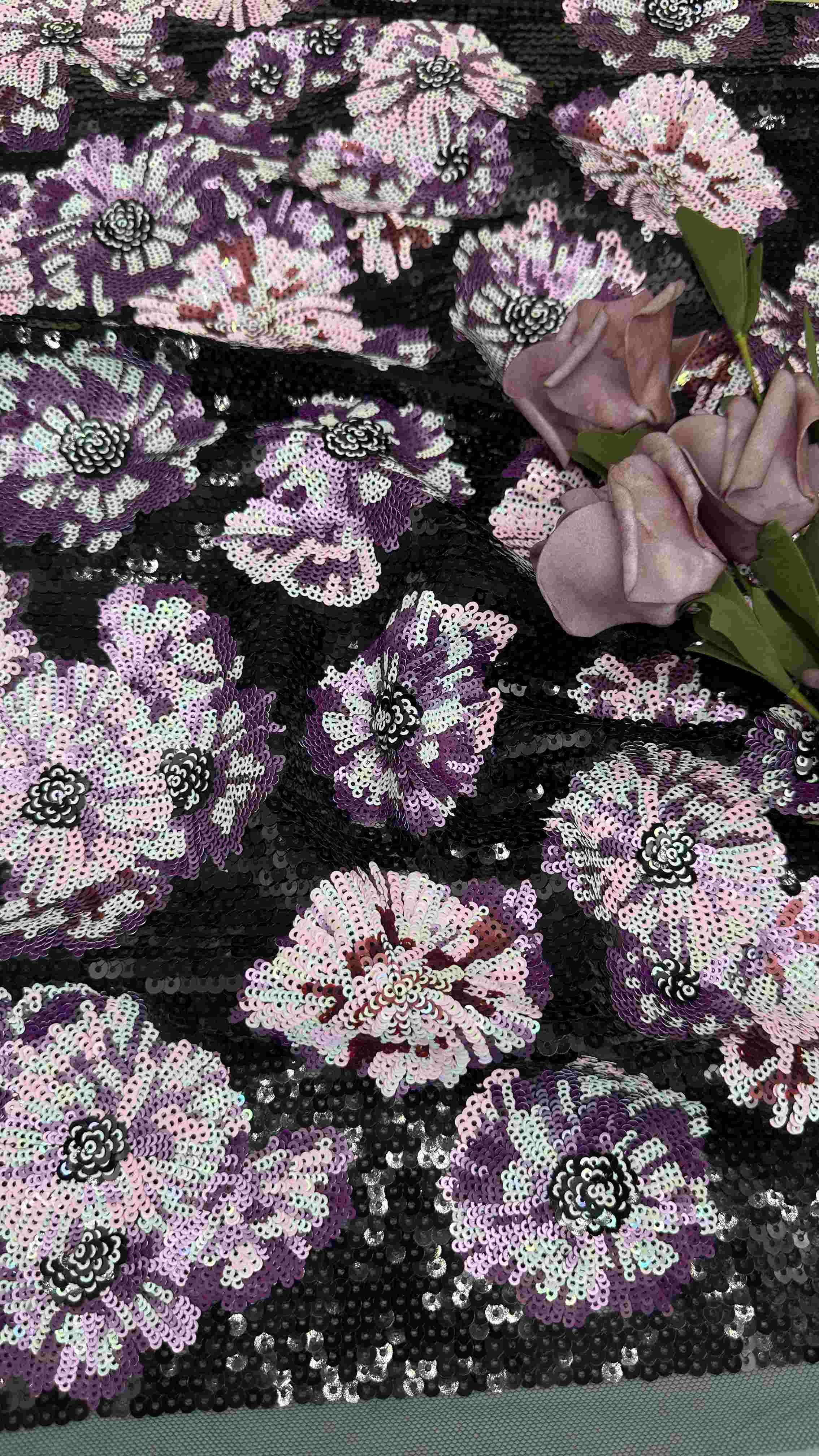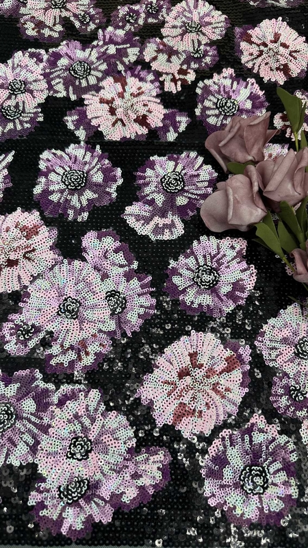 Nom de la production | Tissus brodés en paillettes de fleurs |