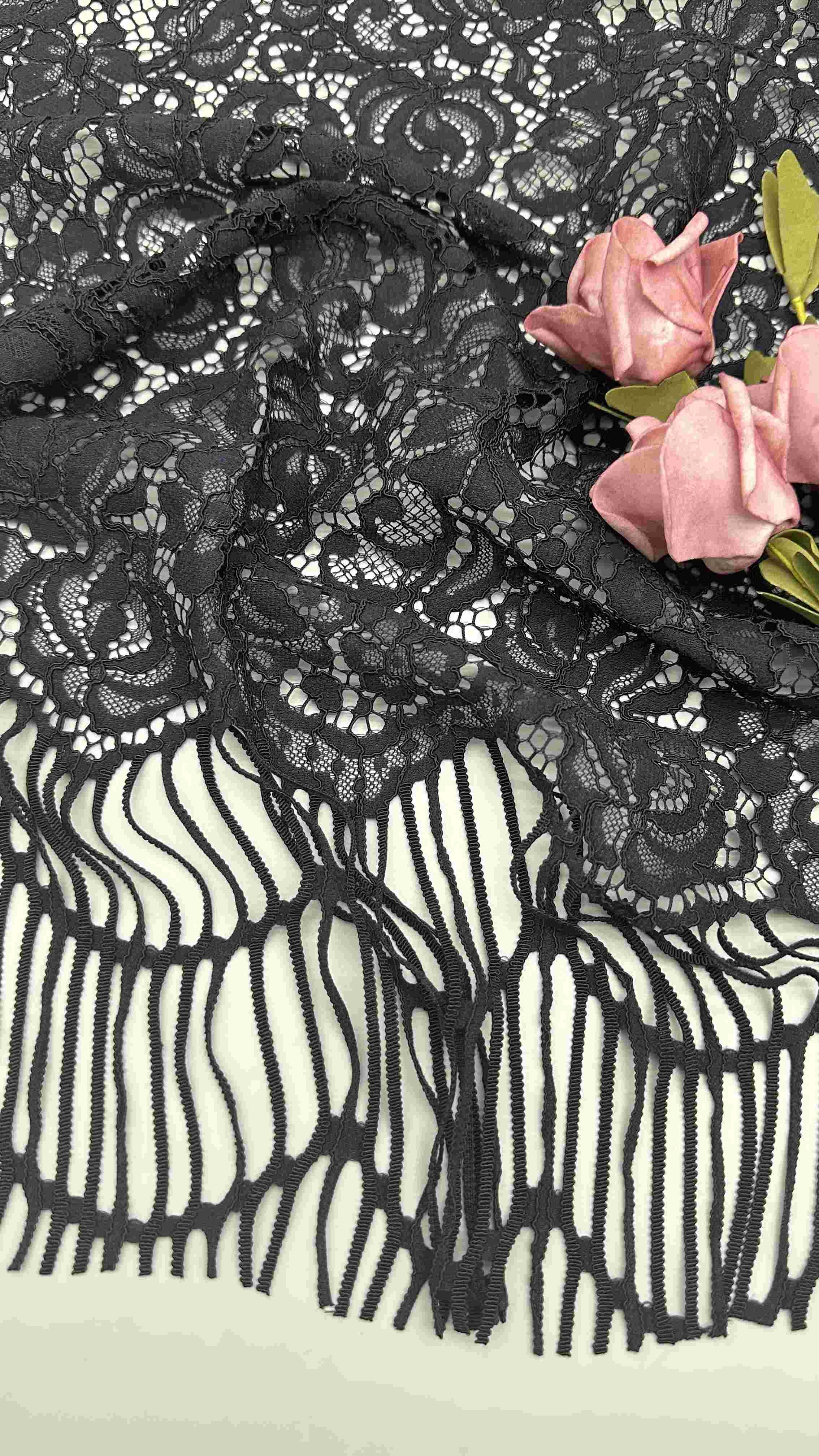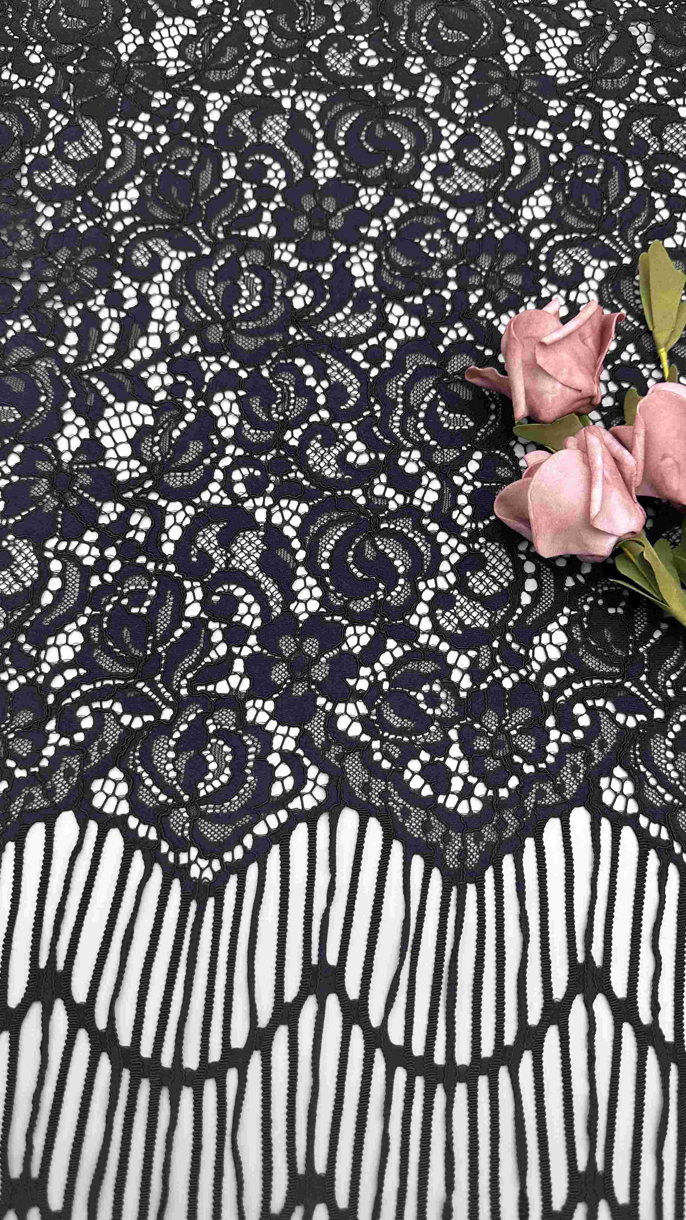 Mettre en évidence: | Tissu en dentelle à cordes de couleur noire,Tissu en dentelle à câble de 140 cm,Tissu de dentelle à motifs de fleurs |