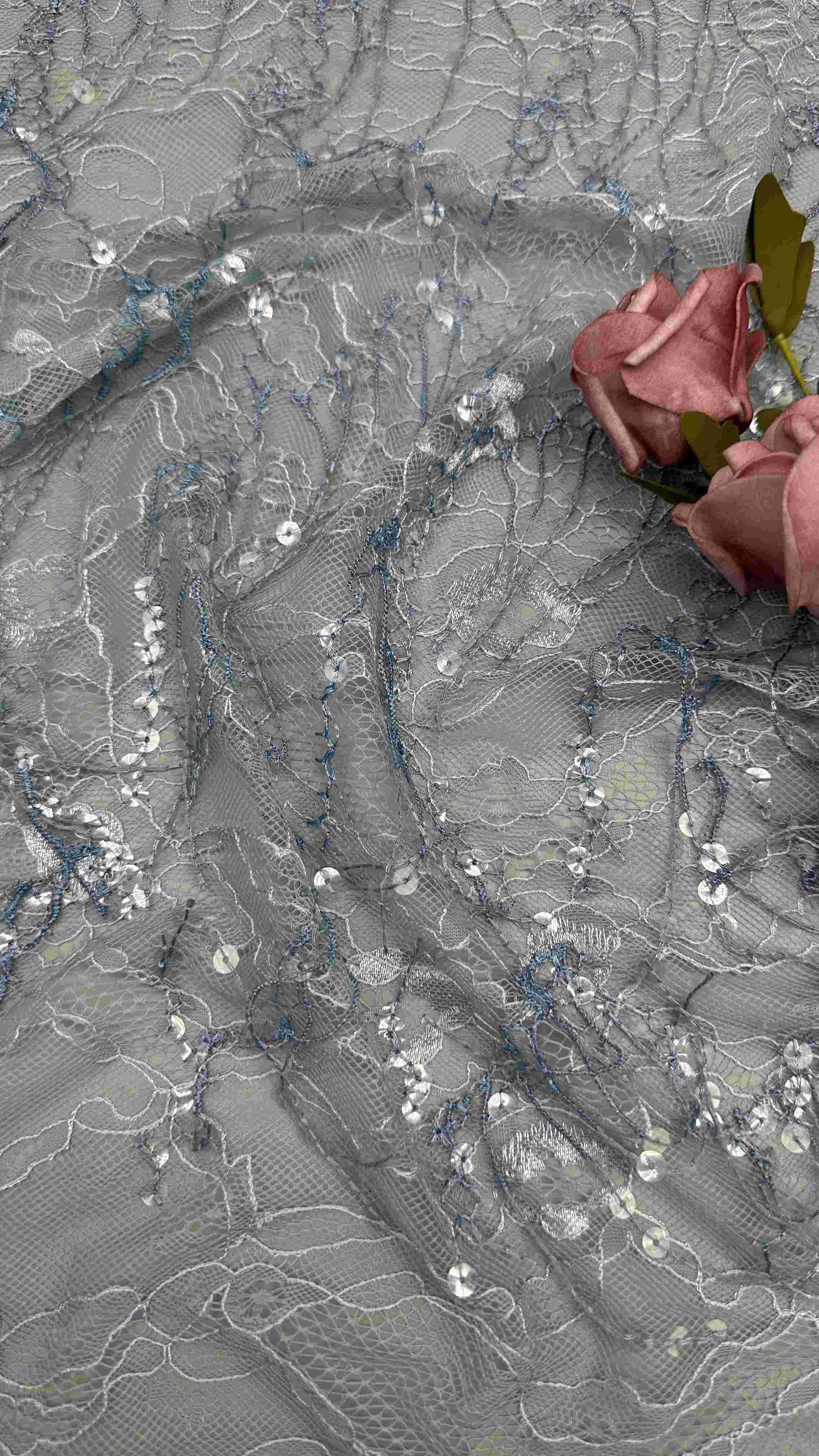 Mettre en évidence: | Tissu en dentelle à broderie en paillettes 3D,Tissu de dentelle de broderie de 45 pouces,Tissu en dentelle brodée de couleur bleue |