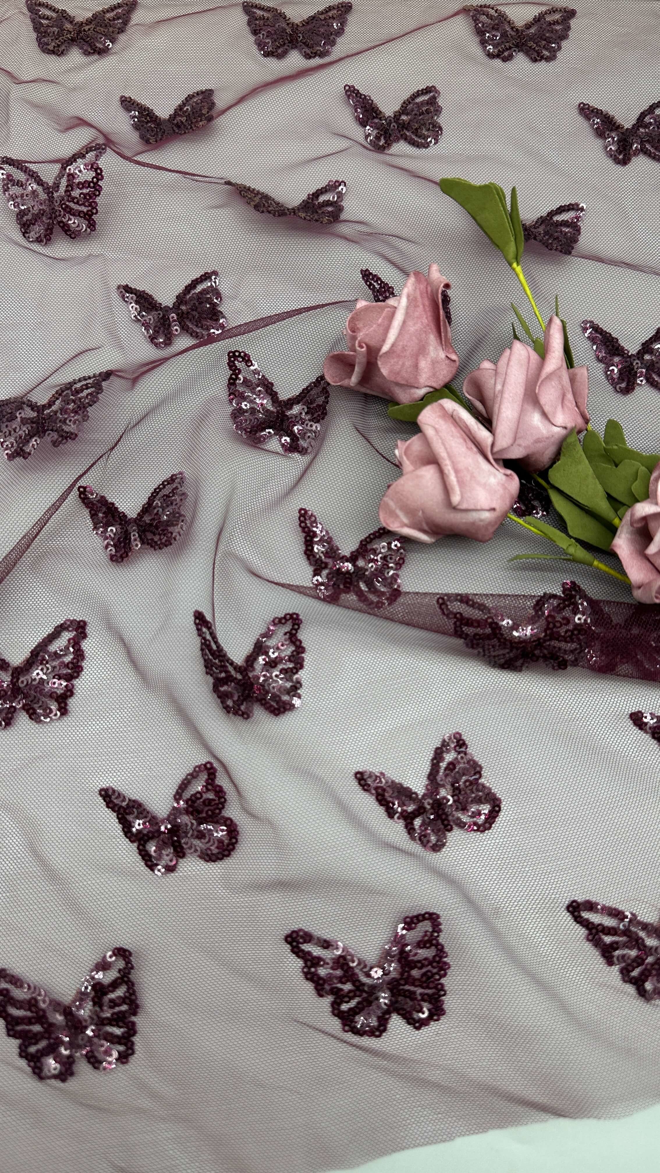 Mettre en évidence: | Tissu brodé de sequins de luxe,tissu en dentelle à paillettes papillon,tissu de broderie durable pour mariages |