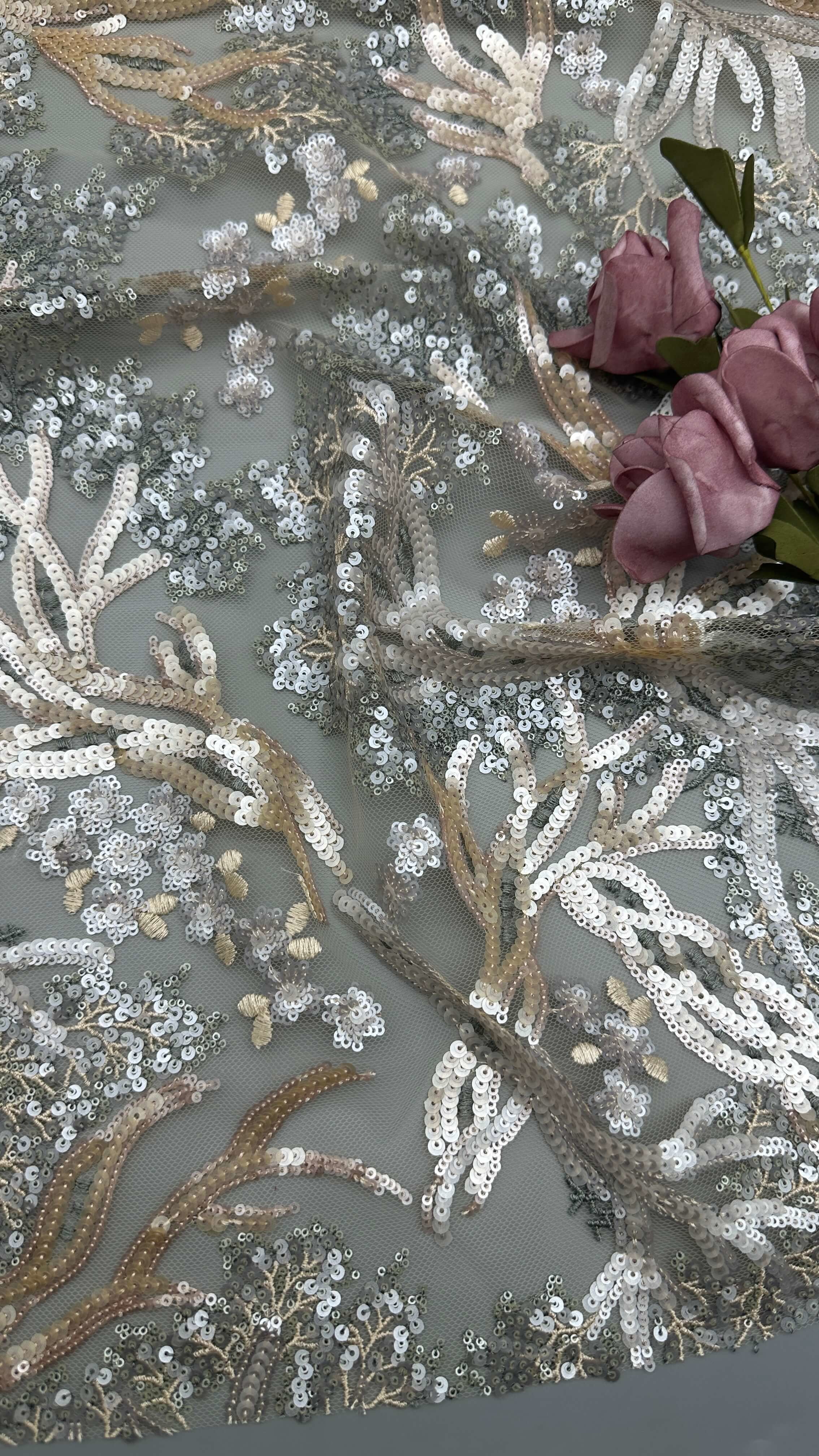 Mettre en évidence: | Tissu de dentelle à broderie en paillettes durables,Élégante tissue de dentelle brodée en paillettes,Tissu de dentelle de broderie de paillettes de luxe |