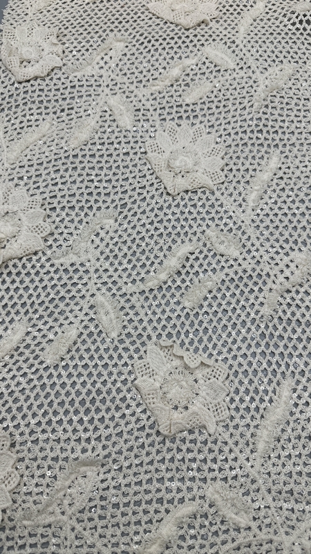 Mettre en évidence: | Tissu de dentelle brodée de haute qualité,Tissu en dentelle de paillettes à feuilles,Tissu de dentelle brodé pour robe de fête |