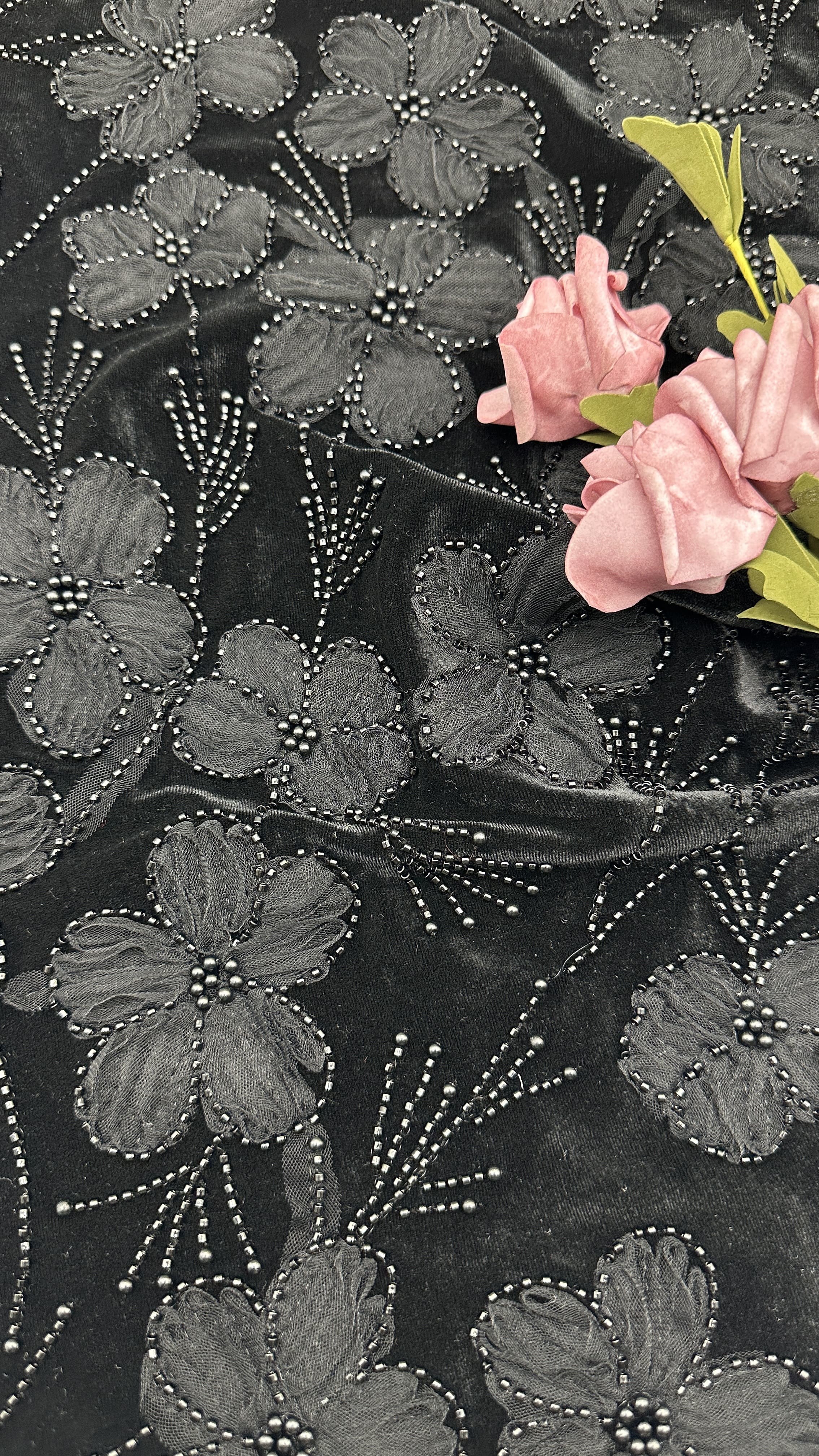 | Mettre en évidence: | Tissu brodé élégant à perles,Tissu brodé en perles pour occasions de luxe,Tissu de broyage à perles florales 3D |