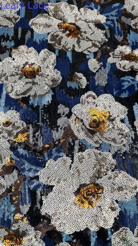 Mettre en évidence: | Tissu de dentelle brodé en paillettes à feuilles,Tissu de dentelle brodé en paillettes sur mesure,Tissu de dentelle brodé en paillettes de polyester |