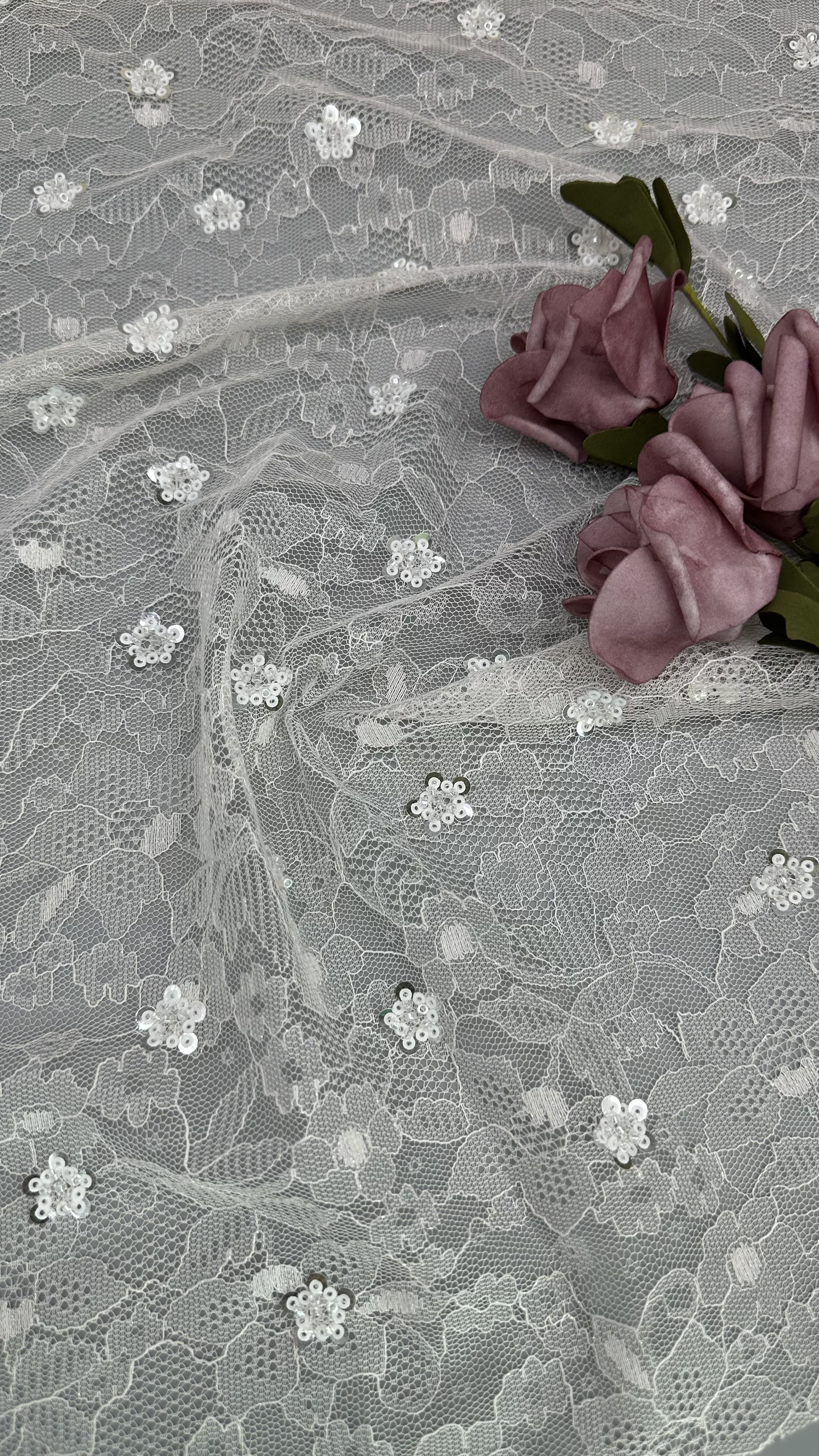 Mettre en évidence: | Tissu en dentelle de Chantilly français blanc,Tissus en dentelle de séquence en tissu de dentelle de Chantilly français |