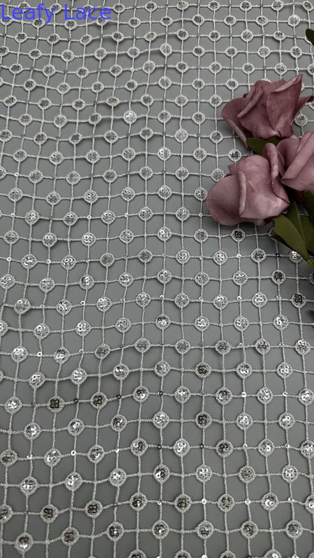 | Mettre en évidence: | Déclaration Vêtements de cérémonie Des séquins Tissu argenté,Tissus de séquins creux,Tissu brodé de paillette feuillue |