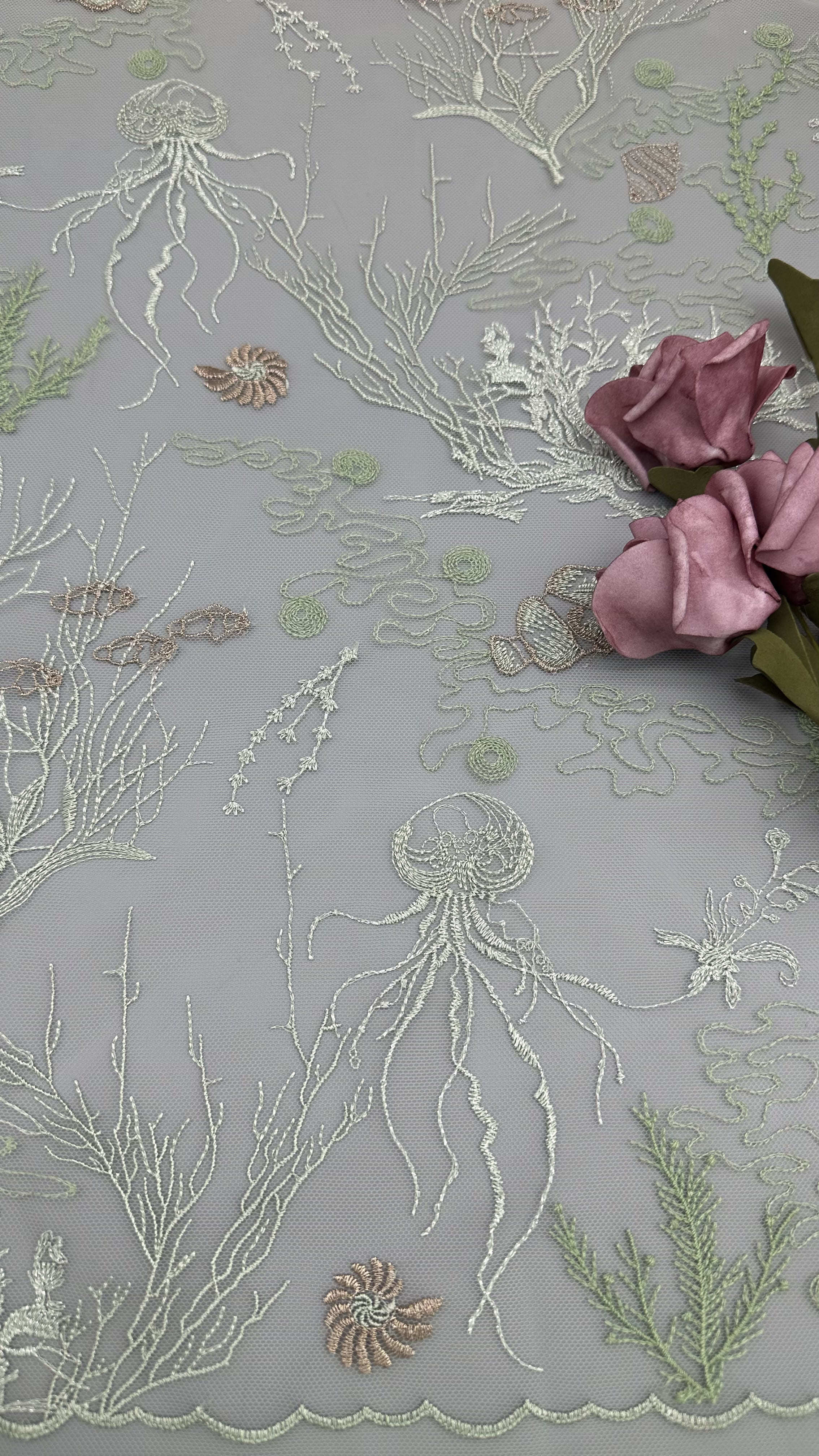 Une équipe créative se tient au courant des tendances. Les installations de recherche et les équipements de production sont tous avancés. La plupart de nos motifs sont protégés par le droit d'auteur et basés sur des œuvres d'art originales. Le plus important est notre concentration sur la percée des techniques qui font progresser l'art de la fabrication de la dentelle. De plus, Leafy Lace propose suffisamment de couleurs de tissu écru et fini pour répondre aux besoins en constante évolution de nos clients.