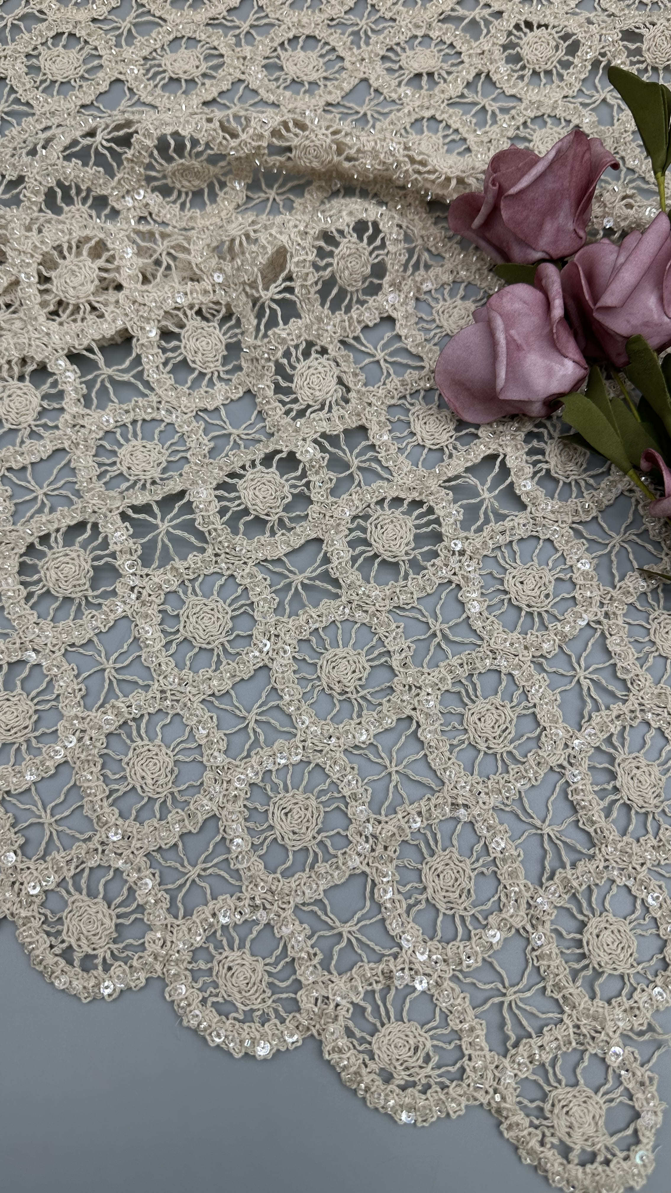 Mettre en évidence: | Tissu en dentelle brodée de sequins avec cordon,Tissu en dentelle brodée avec cordon |