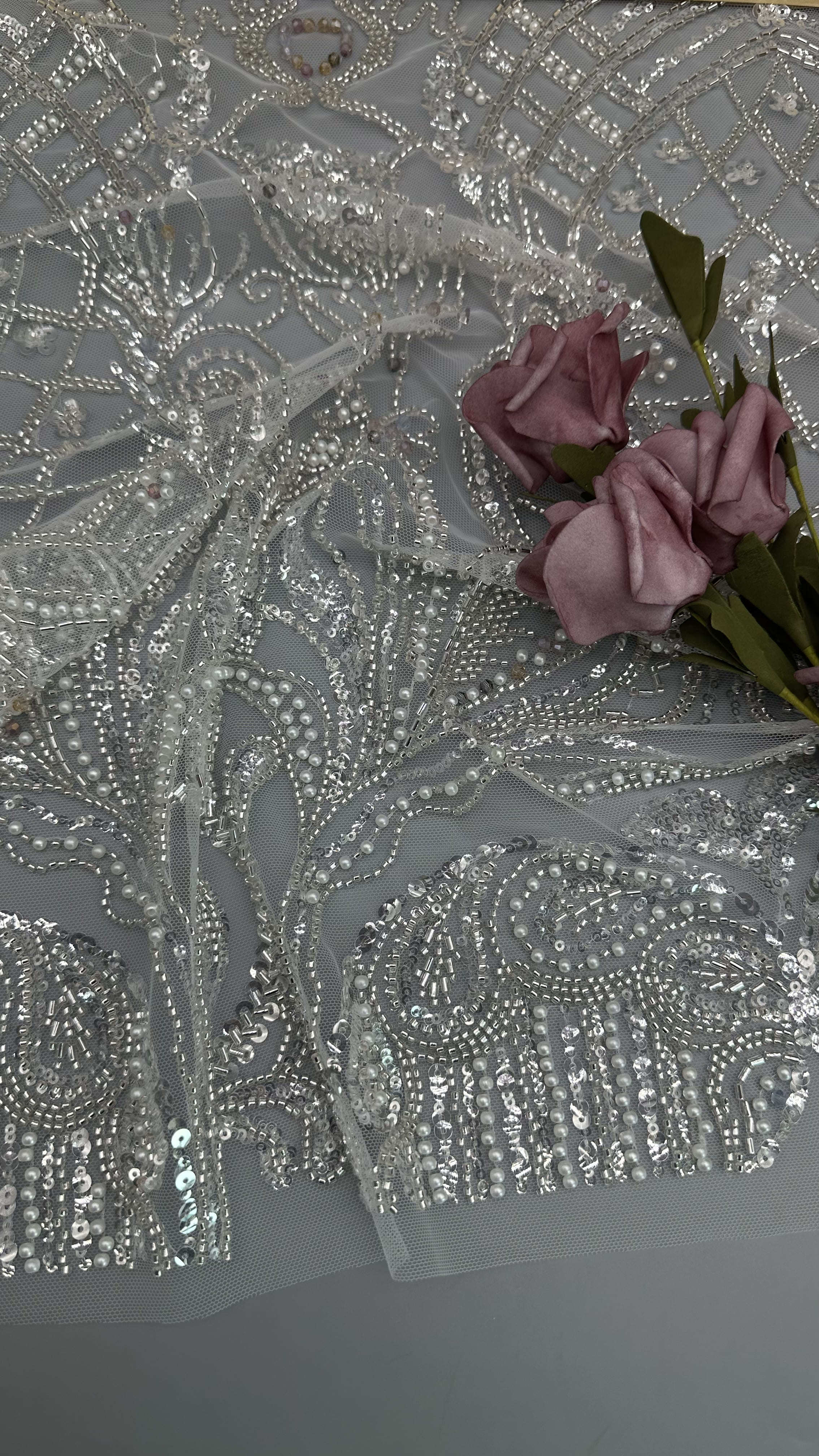 Mettre en évidence: | Tissu de dentelle brodée en perles,Tissu de dentelle brodé en perles |