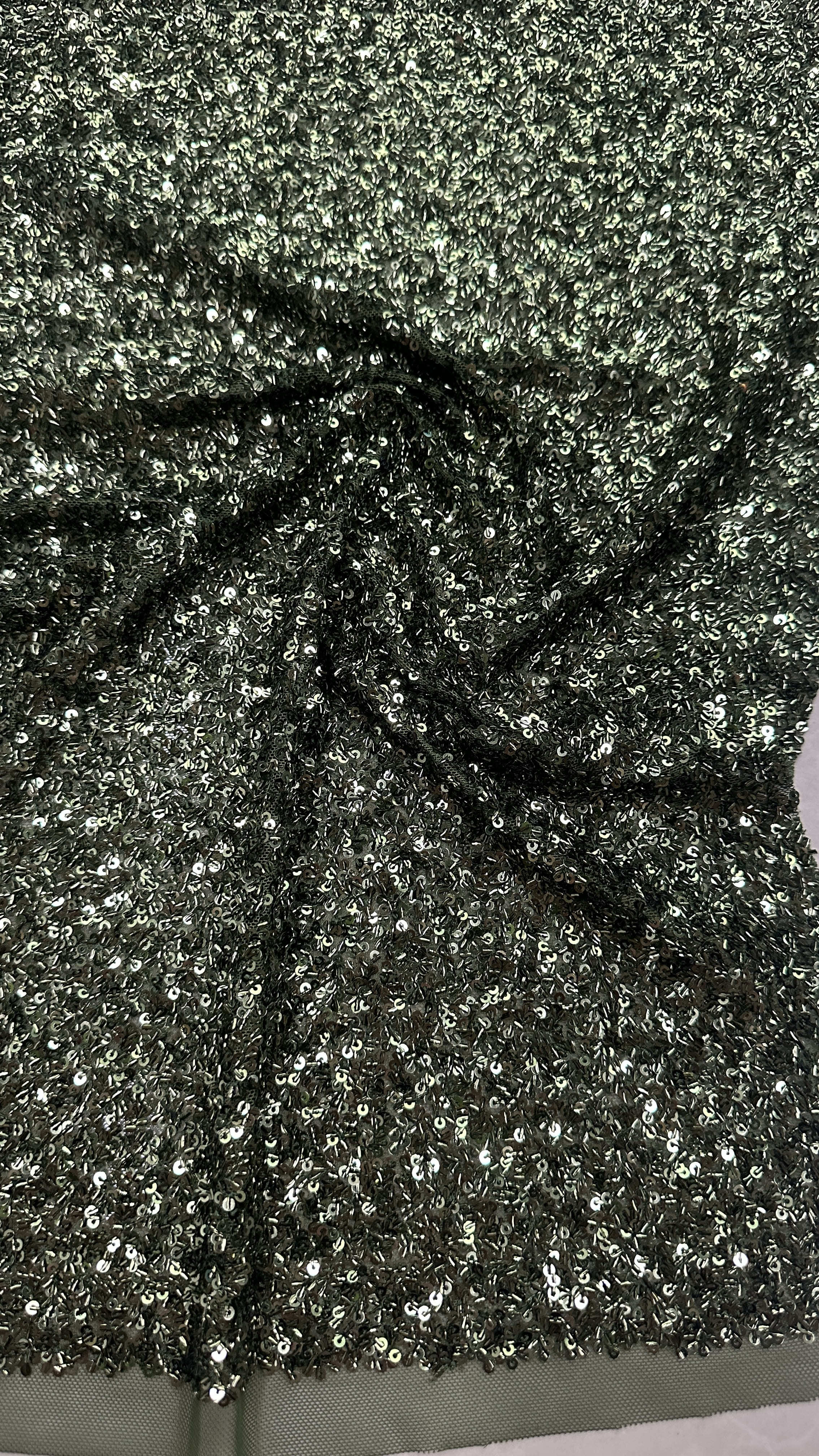 Mettre en évidence: | Tissu de séquille brodé en polyester sur mesure,Tissus de paillettes brodés complexes,Tissu brodé en paillettes pour robe de fête |