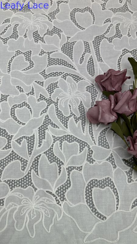 Le tissu de broderie en dentelle avec des motifs de feuilles délicats est un choix populaire pour les robes de mariage et de soirée, offrant élégance, texture et détails complexes. La technologie derrière sa production implique un mélange d'artisanat traditionnel et d'innovations textiles modernes.