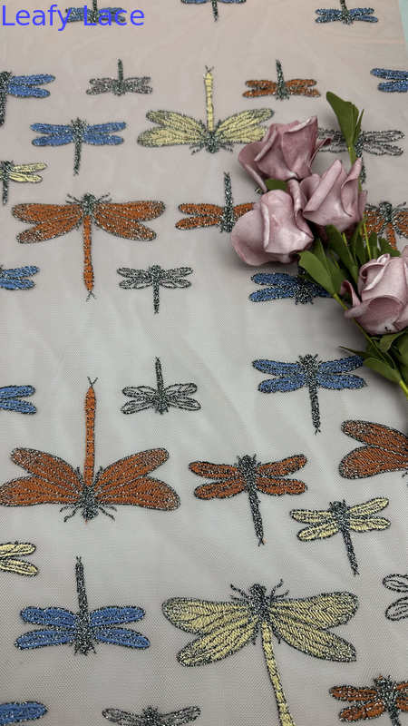Le tissu brodé en dentelle avec de délicats motifs de feuilles est un choix populaire pour les robes de mariage et de fête, offrant élégance, texture et détails complexes.La technologie de fabrication est un mélange d'artisanat traditionnel et d'innovations textiles modernes.