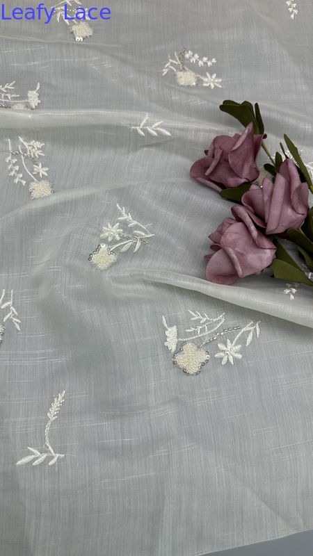 Le tissu en dentelle brodée avec des motifs de feuilles délicats est un choix populaire pour les robes de mariage et de soirée, offrant élégance, texture et détails complexes. La technologie derrière sa production implique un mélange d'artisanat traditionnel et d'innovations textiles modernes.