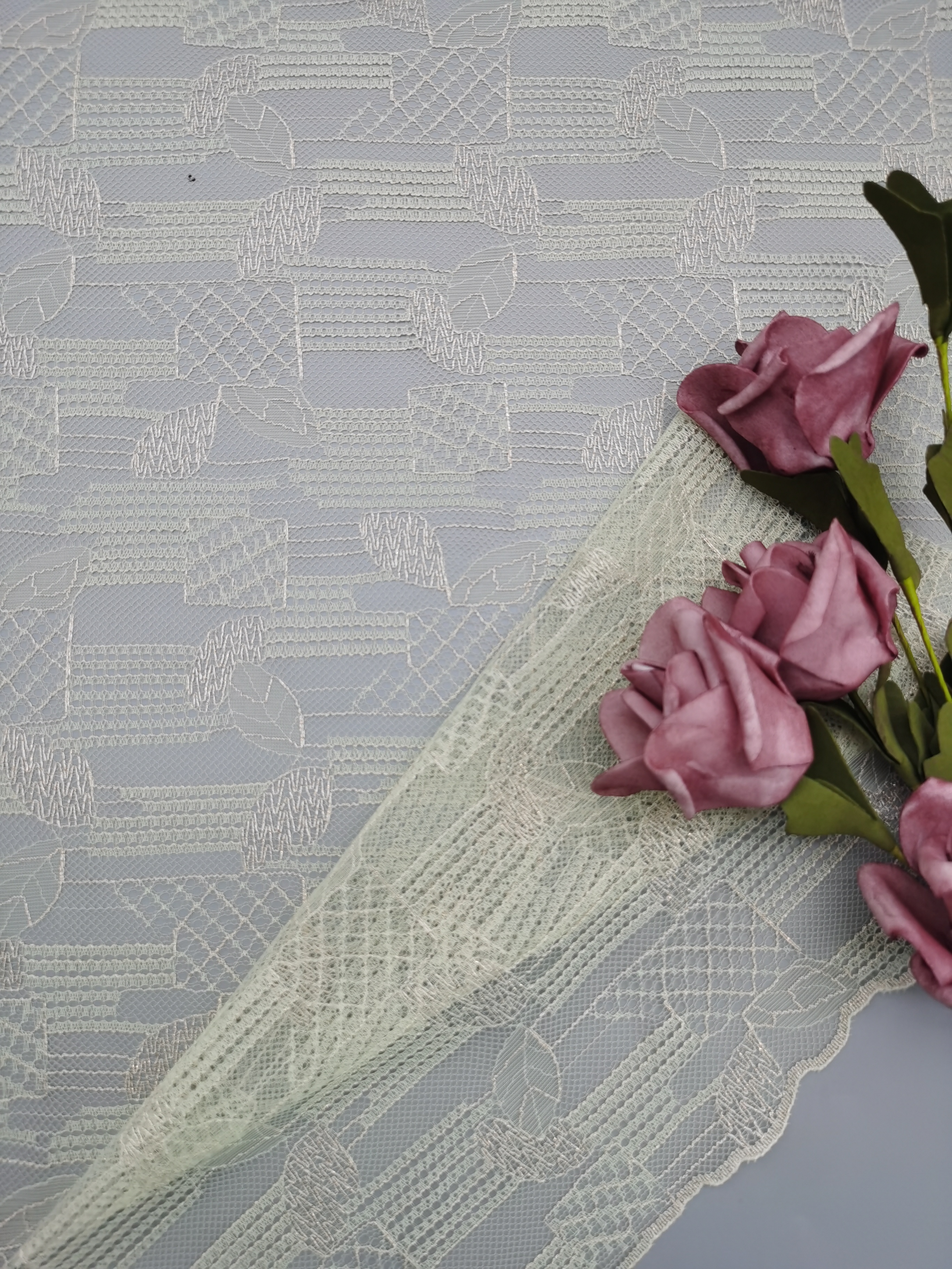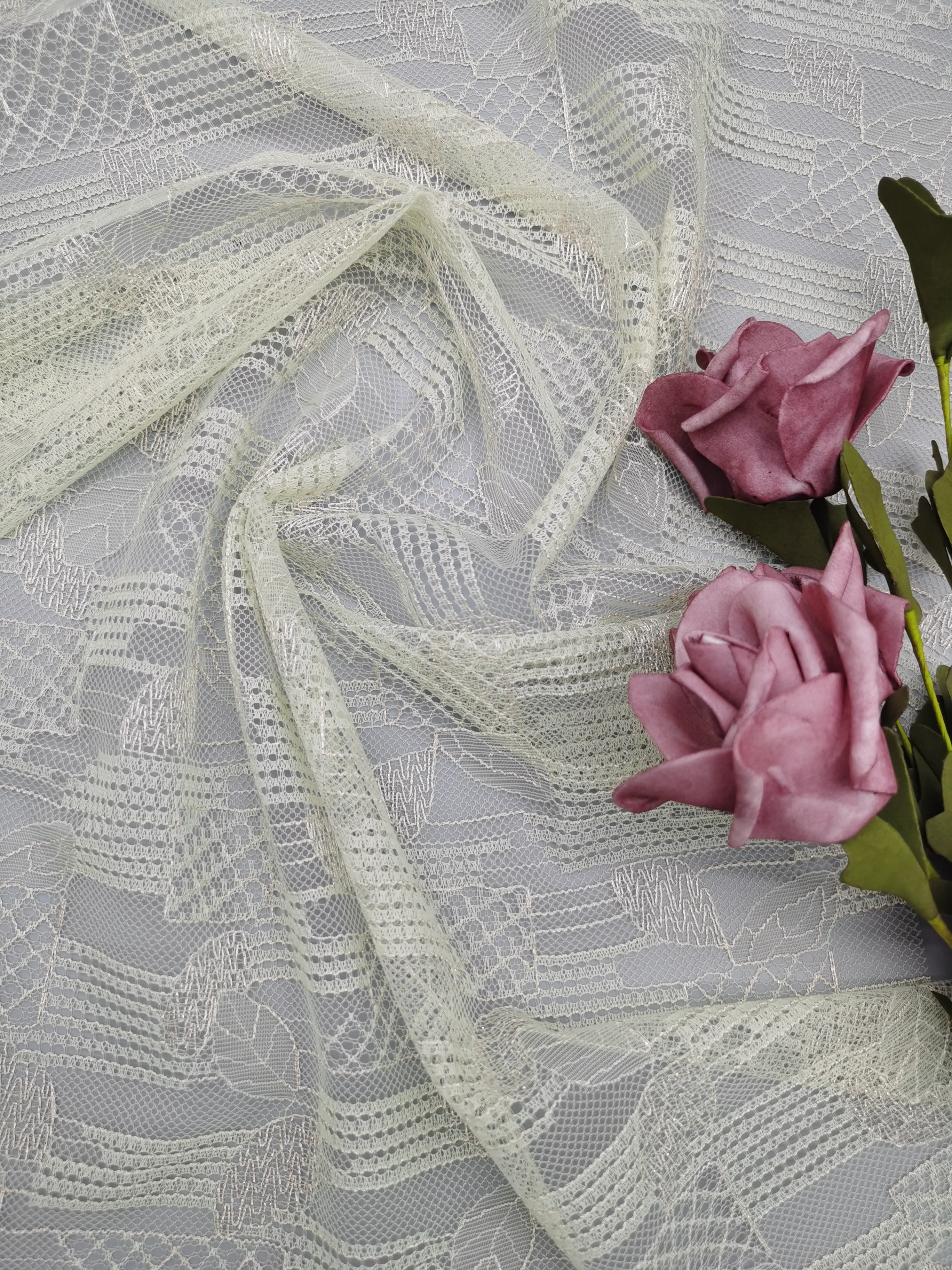 A creative team keeps abreast of trends. The research facilities and production equipment are all advances. Most of our patterns are copyrighted and based on original artwork. Most important is our focus on breakthrough of the techniques that advance the art of lace marking . Additionally, Leafy Lace Carries the enough greige and finished colors to response to our customers’ s rapidly changing needs.